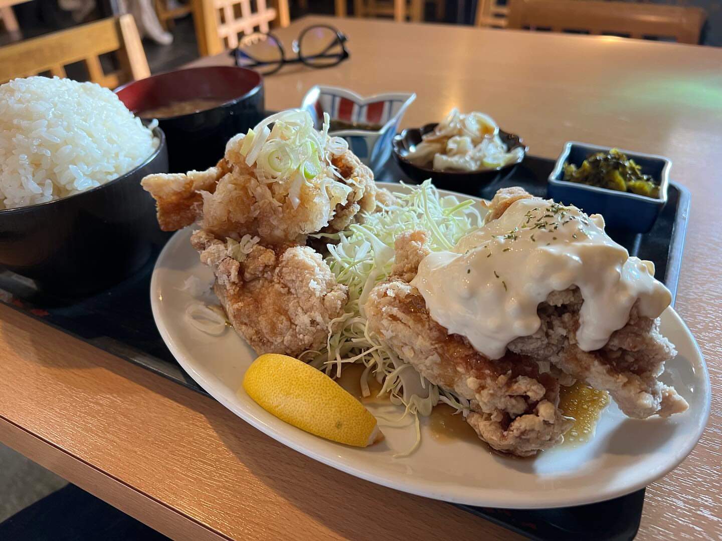 凄いボリュームの唐揚げ油淋鶏定食!¥680