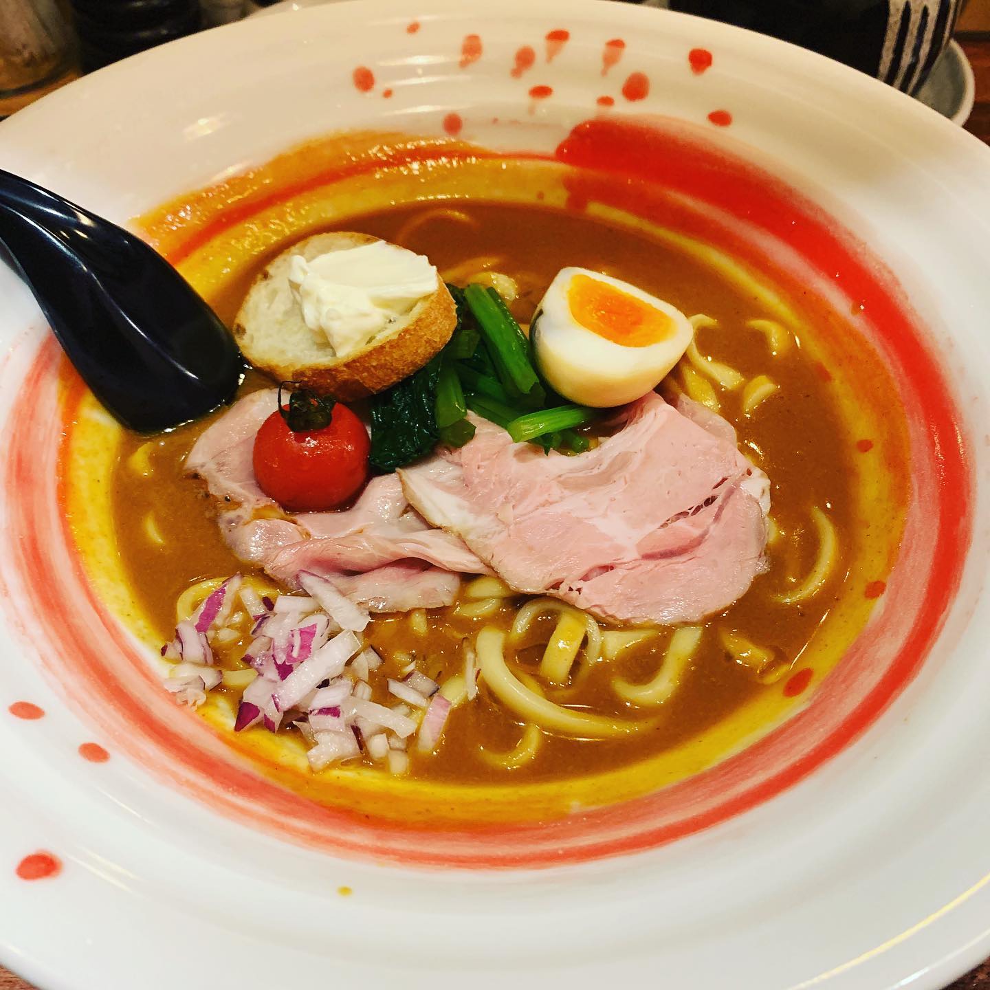 水道橋の海老丸らーめんは、フレンチの技法を取り入れた創作ラーメン店です。濃厚な海老スープにサワークリームの酸味とチーズ削り、バゲットの組み合わせとリゾット仕上げが本格フレンチ風の味わいを生み出します。店主の丁寧な接客も魅力です。