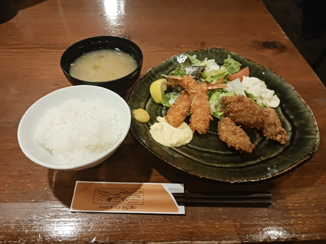 2人とも、カキフライ&エビフライランチ😀エビもカキも小ぶりだけど、衣は薄くてサクサク...