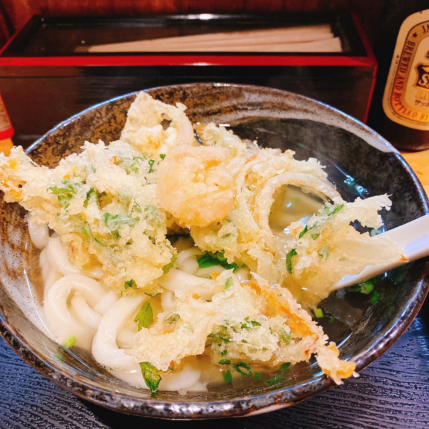 揚げたてのかきあげが別皿でくるかきあげうどんを...