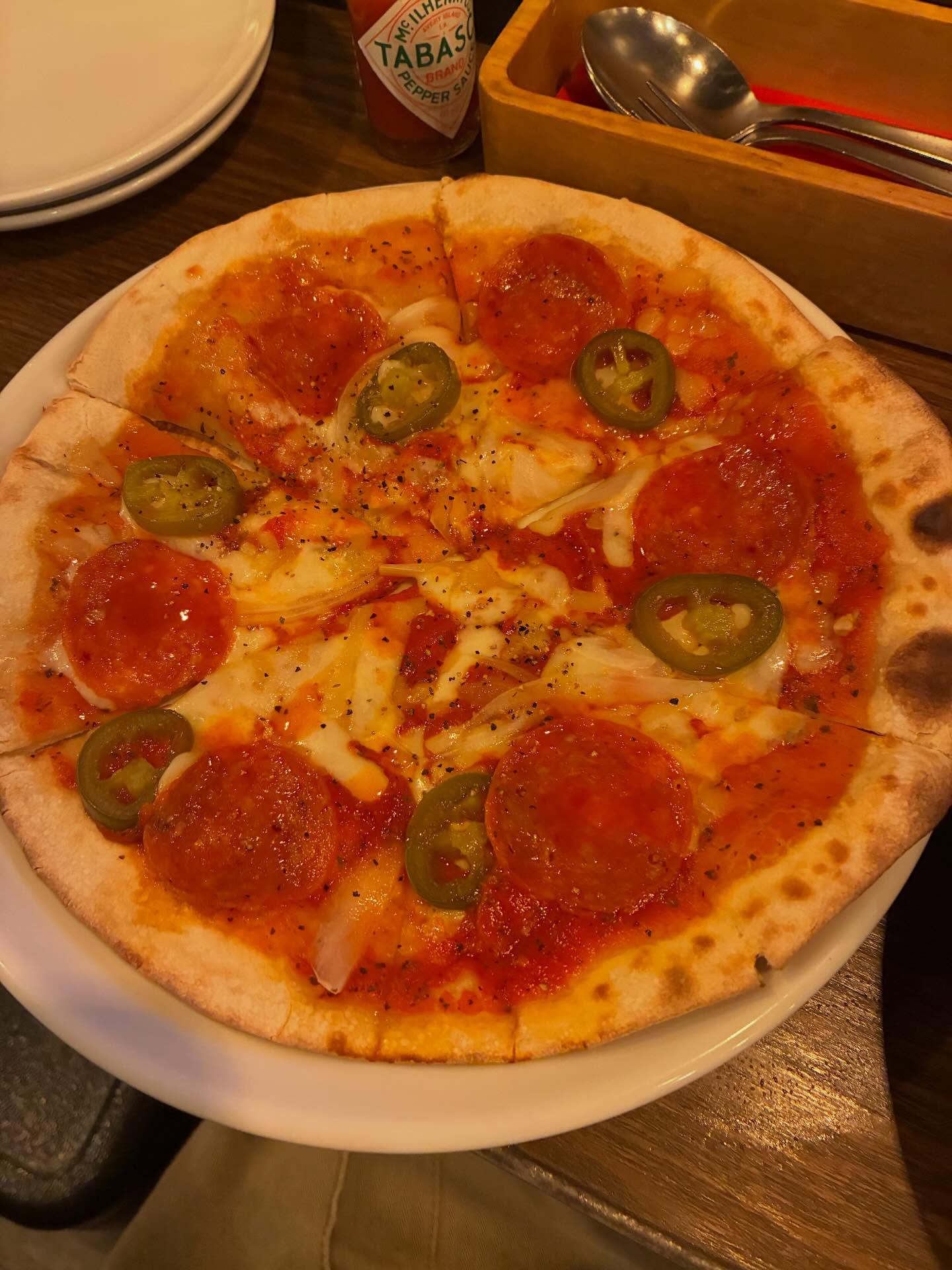 5と7がつく日は「コナの日」と言うことで、江古田のピザ屋「コナ」で「激辛ハラペーニョピザ」美味し😋