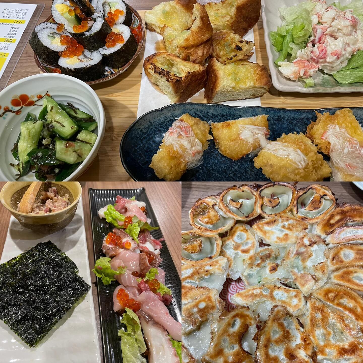 今日の夕食〜🌙初めての喜口屋さんでテイクアウト🥡パーティーセットとカニグラタンをお願いしました😊餃子美味しかった〜🤤種類が色々あるので次回は違うのを食べ...