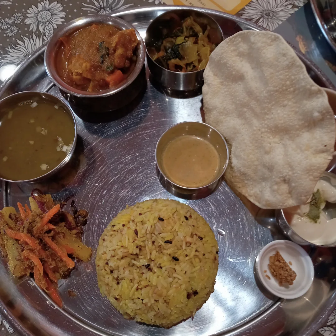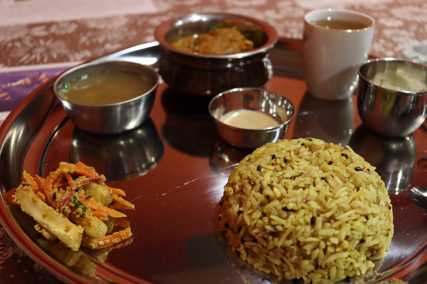 銀のお皿にたくさんのったカレーを食べること