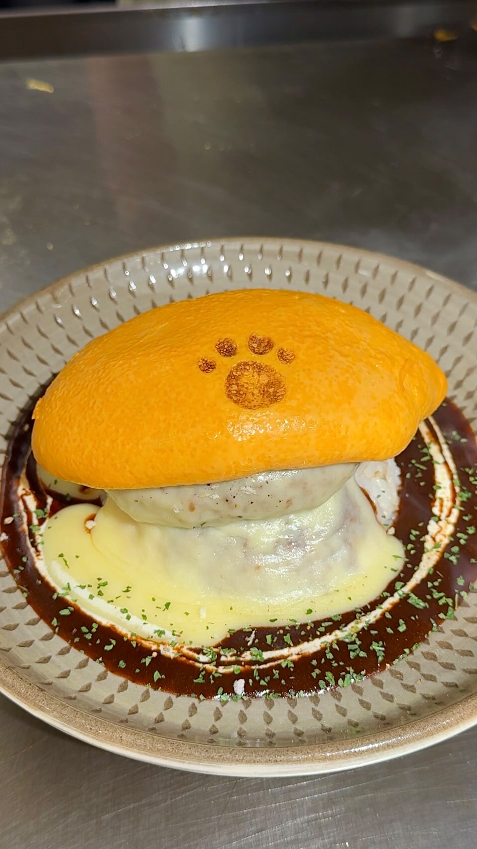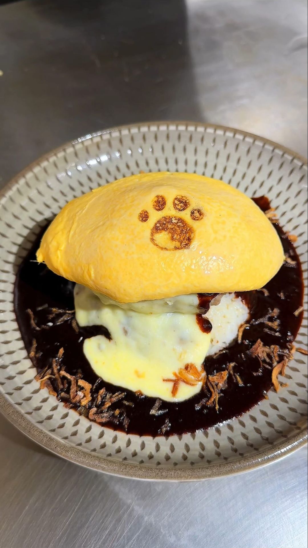 ここは鉄板で調理するオムレツに肉球の...