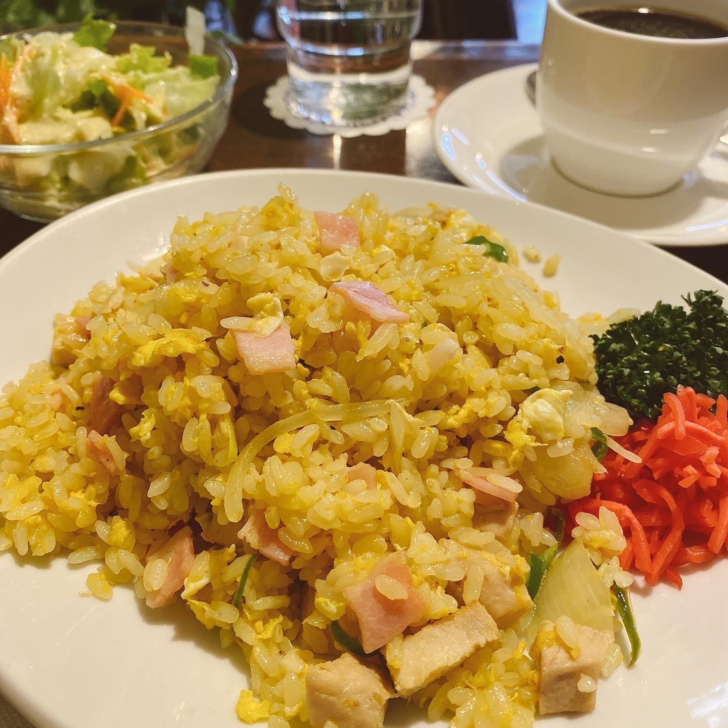 日替りピラフ(サラダ、ドリンク付)950円。