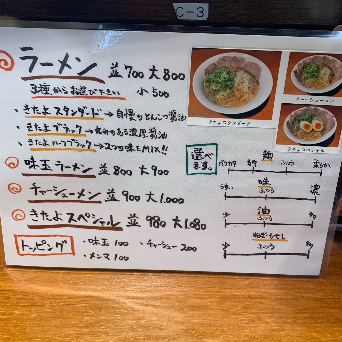 メニューも一新!チャーシュー大盛り、味玉付きのきたよスペシャルおすすめです!
