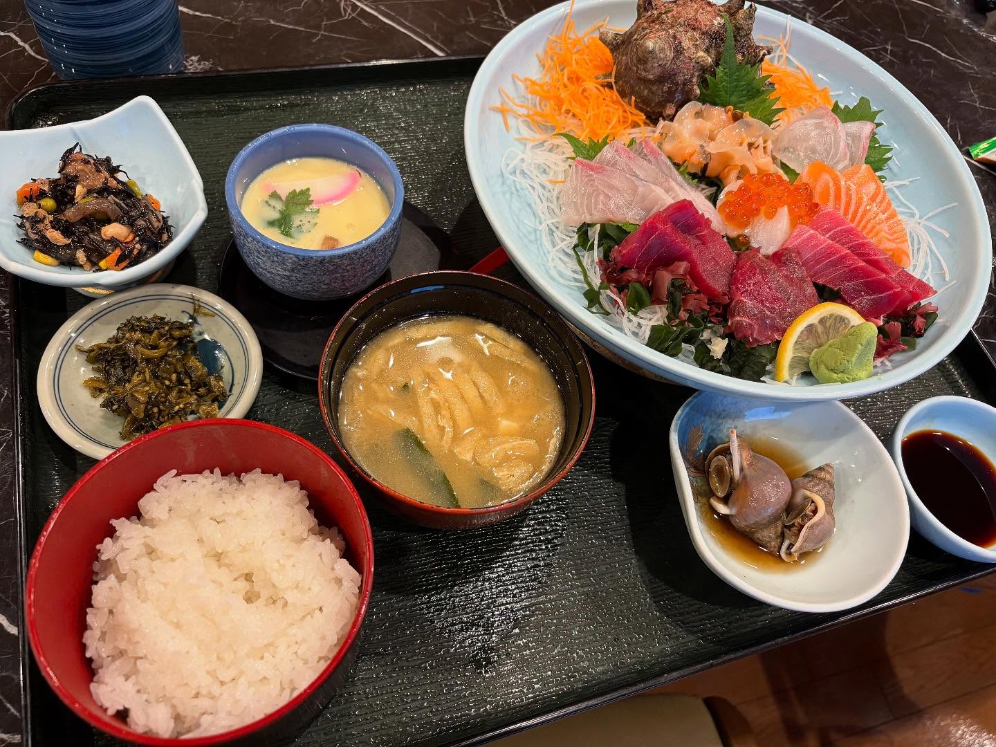 海鮮丼や定食の種類が多くかなり迷いイカ茶漬け定食🦑
