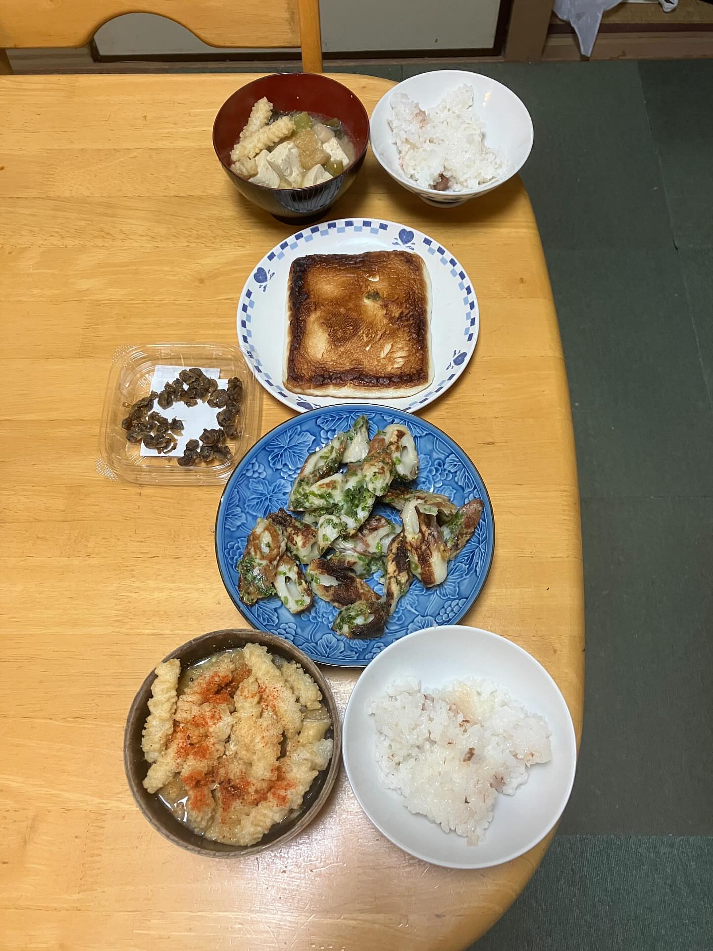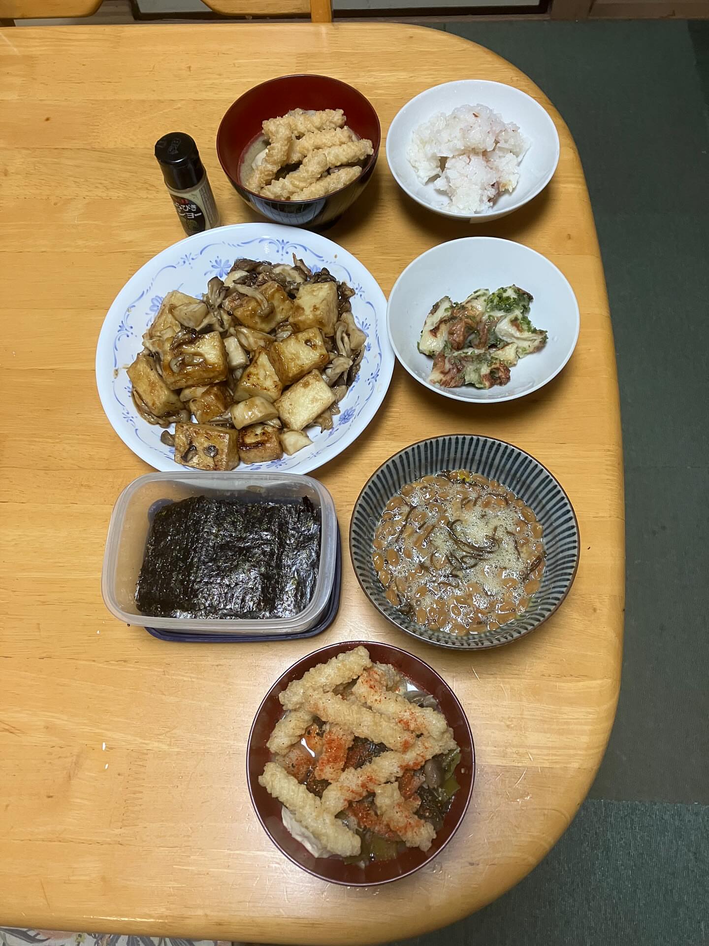 夕飯に厚揚げのオイスター甘酢炒めを作りました😃ご飯味噌汁ちくわの磯辺焼きはレンチン🍚味噌汁にはひねり揚げを入れました🙃もずく酢入り納豆と焼き海苔🙂今日も...