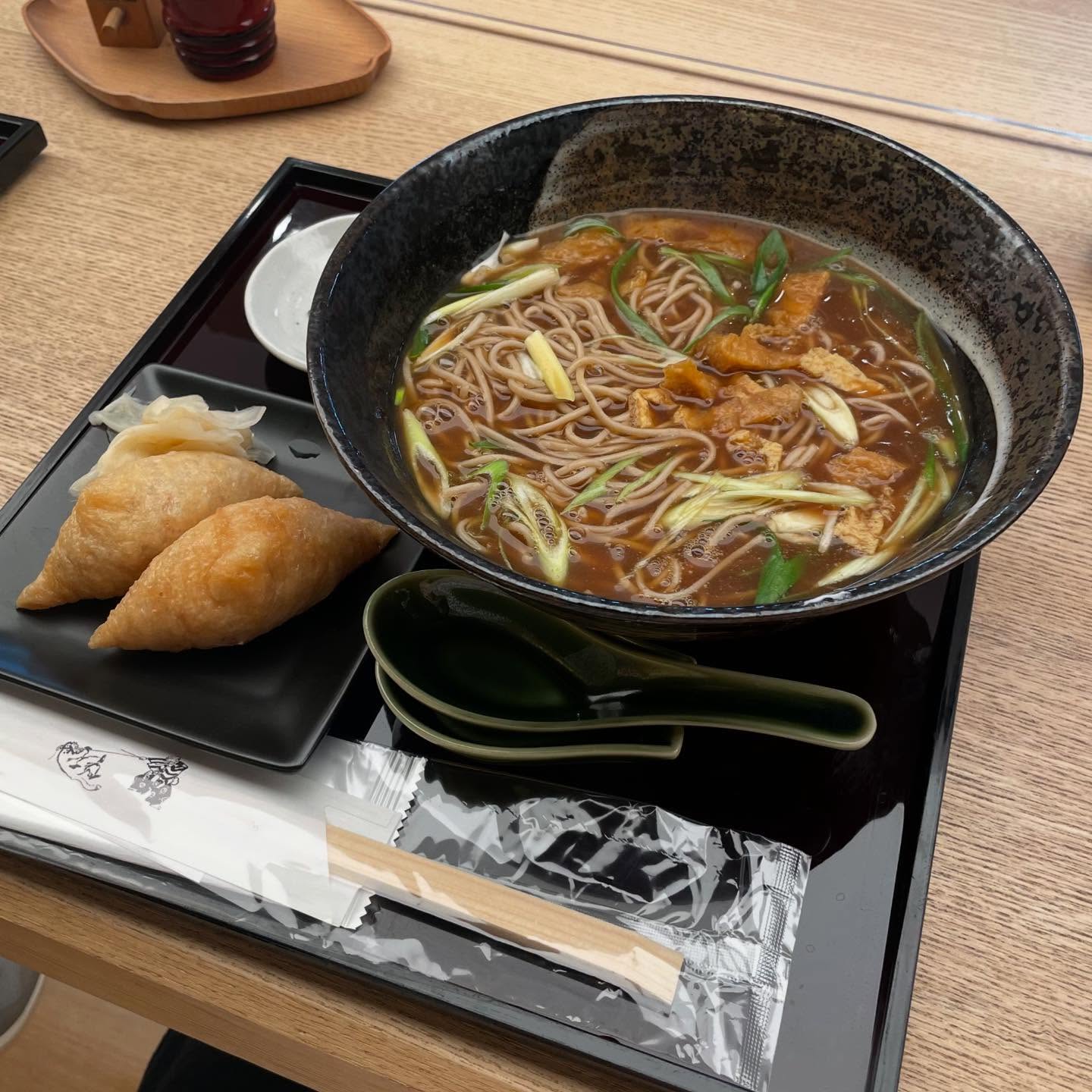 伊丹空港「京出汁おいなり釣狐」の九条ねぎ蕎麦です😽💗