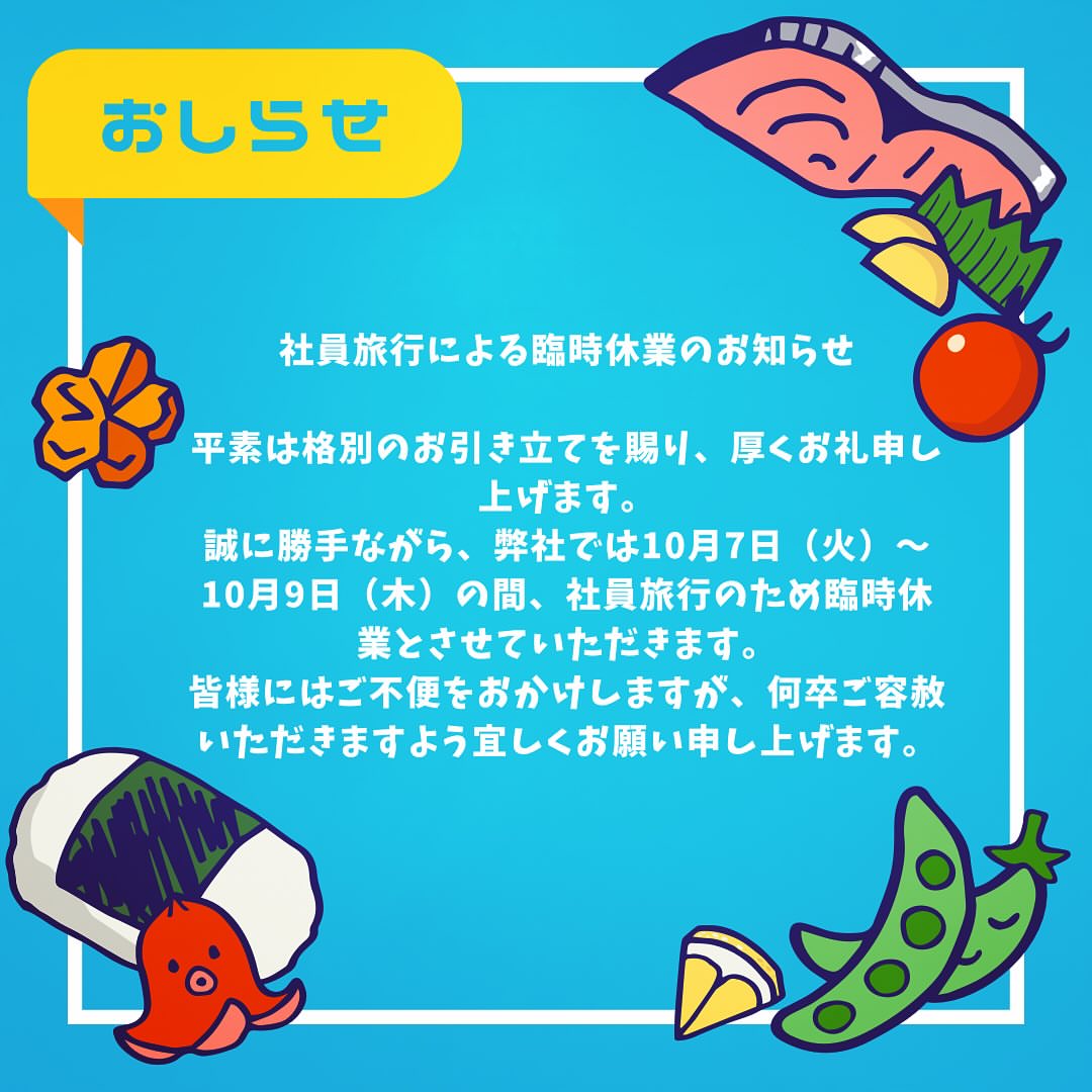 誠に勝手ながら、弊社では10月7日(火)...