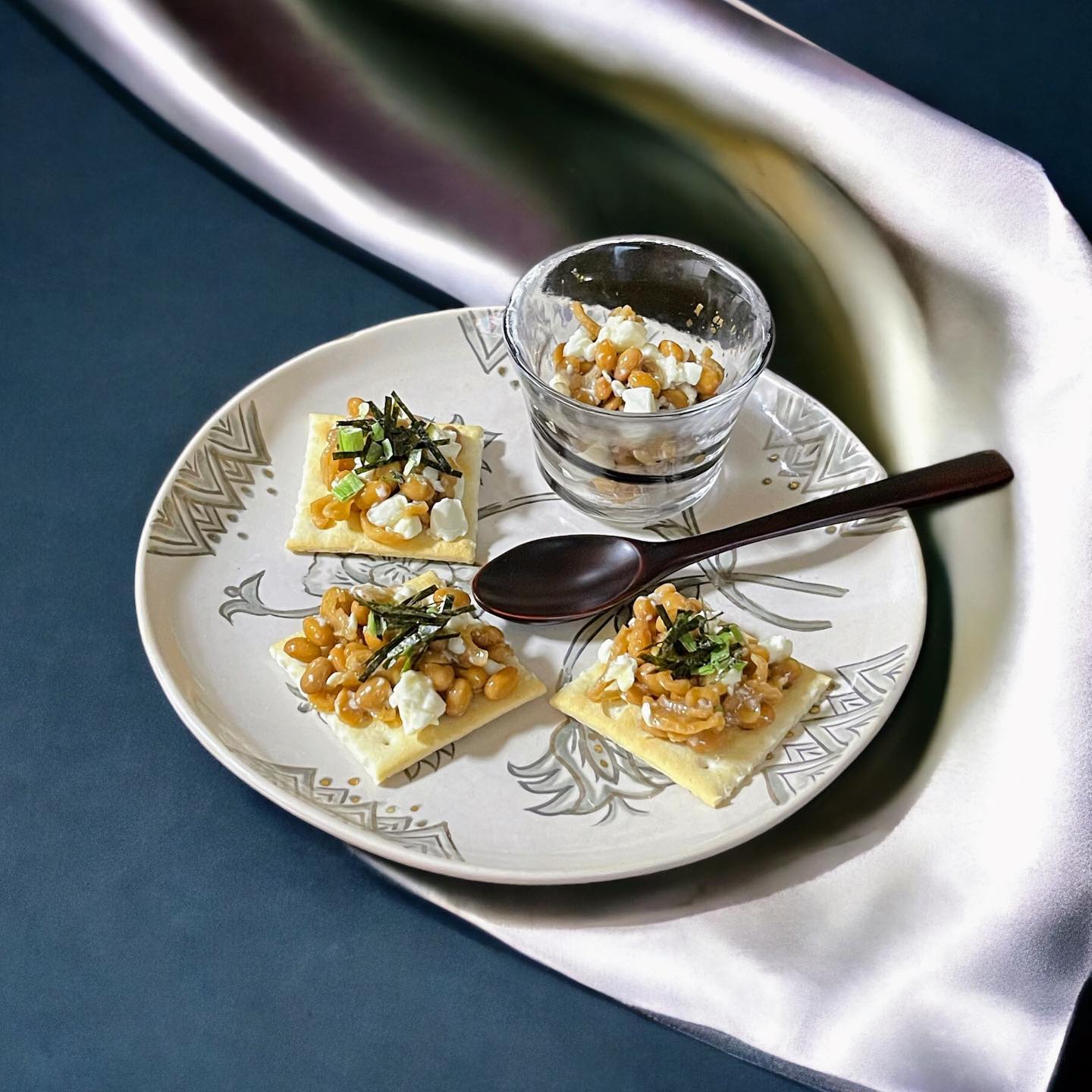 🌿😋 茨城の特産品!切干納豆とクリームチーズの最強組み合わせ!👌🧀🍘海苔のアクセントで更なる美味しさを引き立てました✨