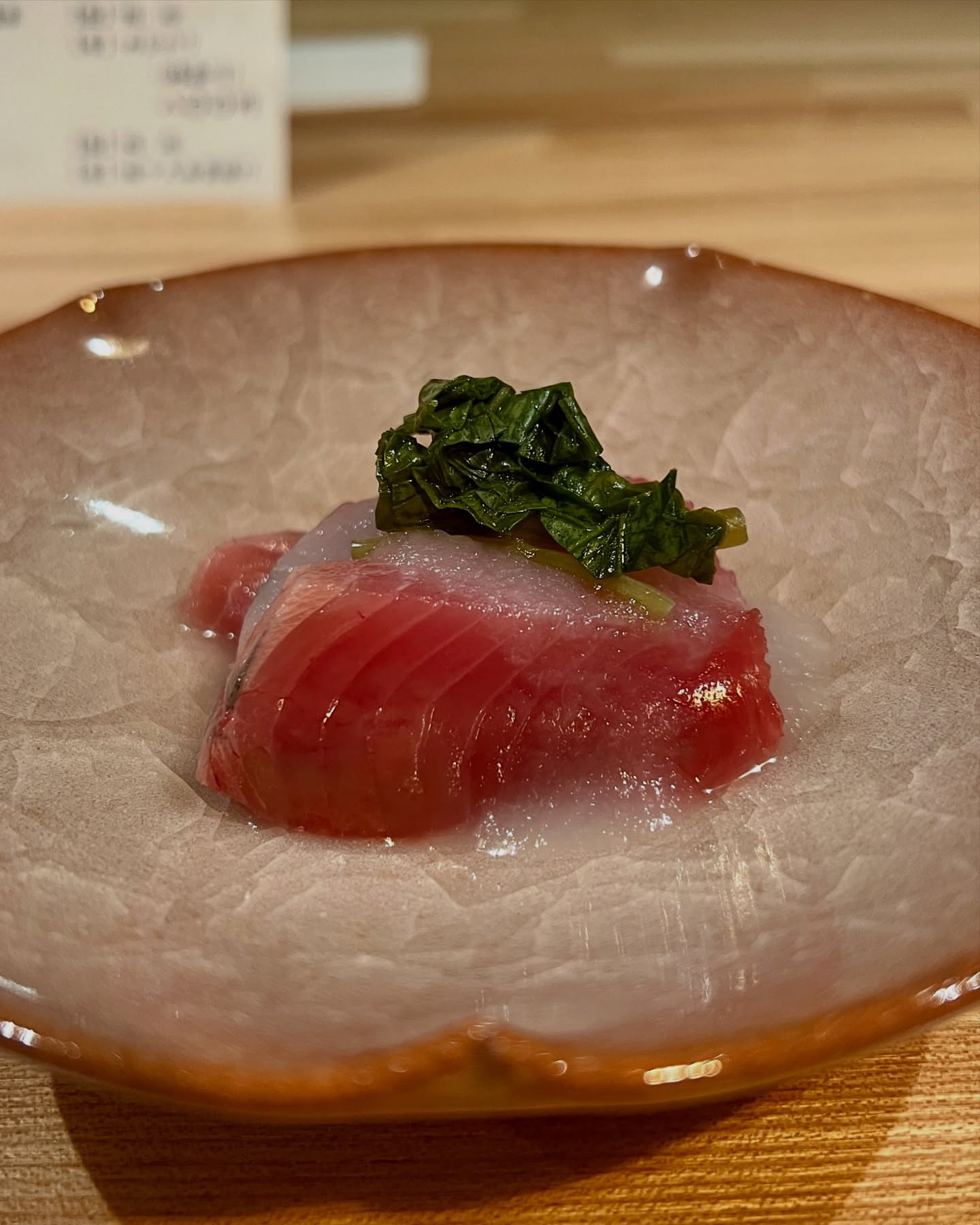 ・お通し(つるむらさきのお浸し) ¥500 / 人