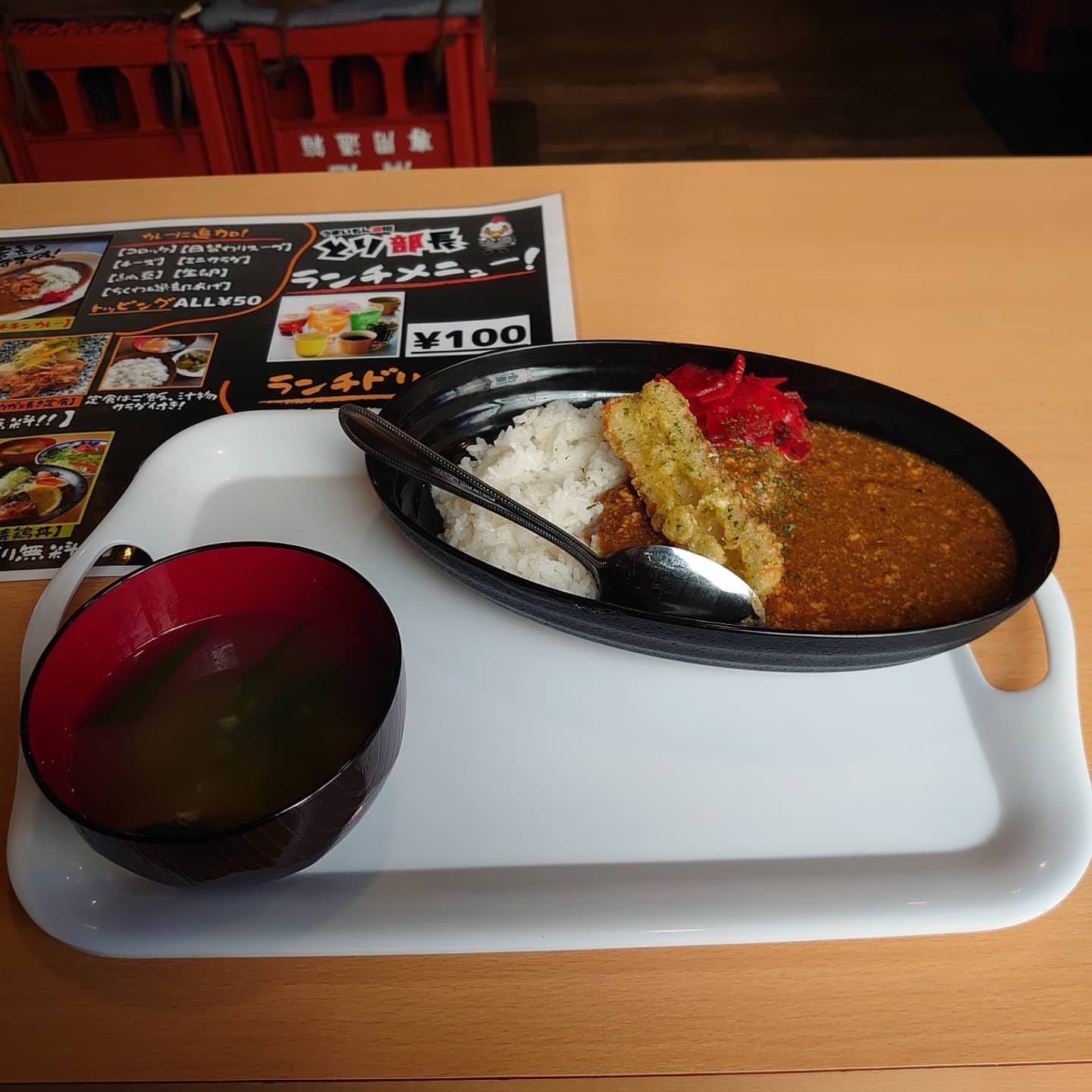 #ランチ#とり部長#300円カレー#トッピング50円#ちくわの磯辺揚げ#日替わりスープ#夜も呑みに来...