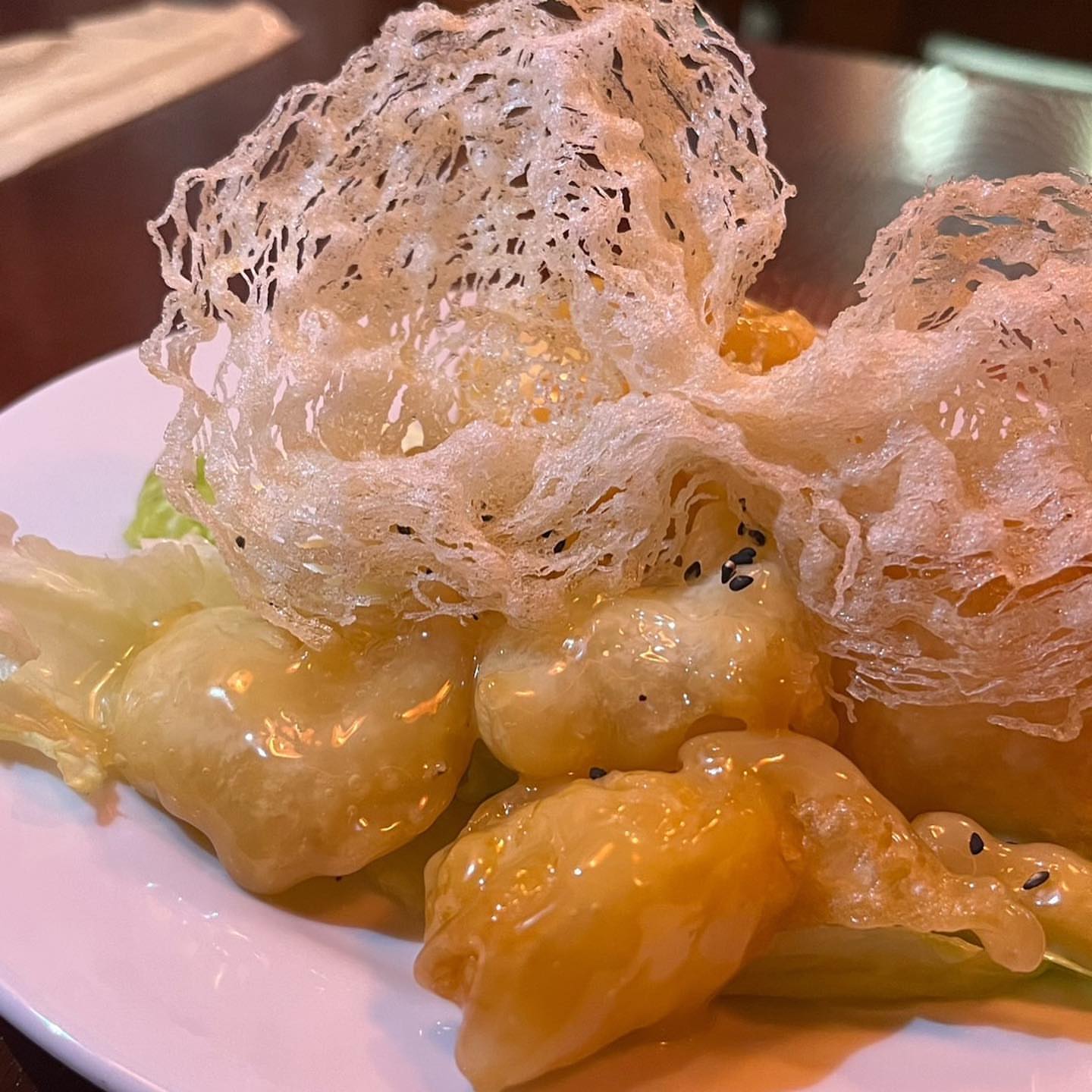 ぷりぷりの海老にサクサクの衣をまとったピリ辛の海老は止める箸を知りません。