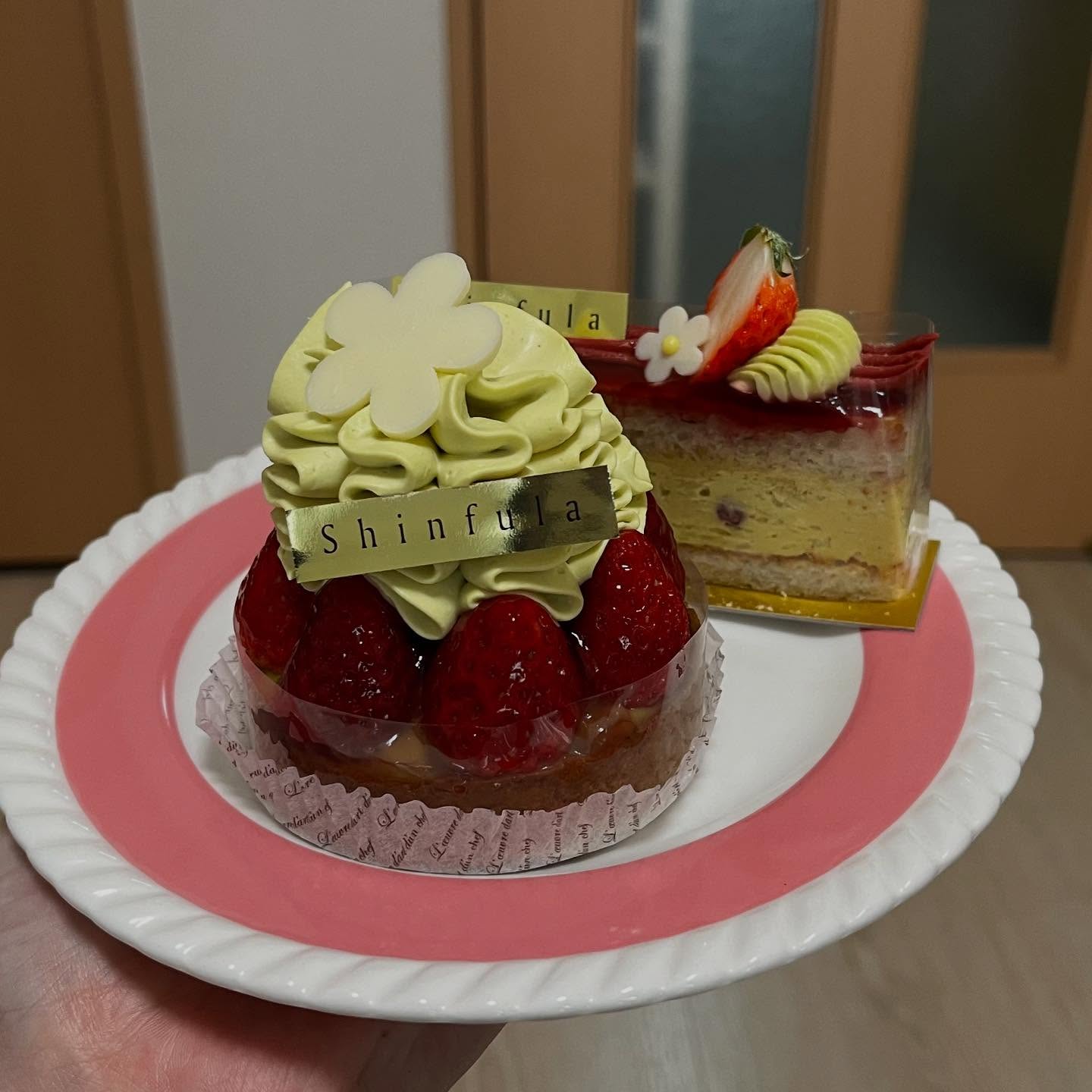 埼玉・志木市のパティスリーShinfulaの看板スイーツ『フレジェ ピスターシュ』。ピスタチオ風味のバタークリームとカスタードに苺を組み合わせ、断面の美しさと甘酸っぱさが際立ちます。駅からは少し離れます。