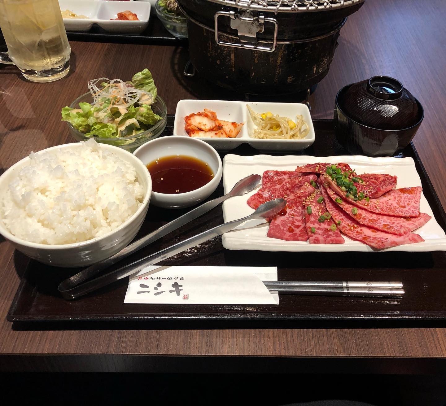 今日のランチは和牛一頭焼肉ニシキ。僕はカルビ&ロースハーフセット、奥さんは焼肉ランチセットを頂きます。ランチでも炭火が出てきます👍。先日...