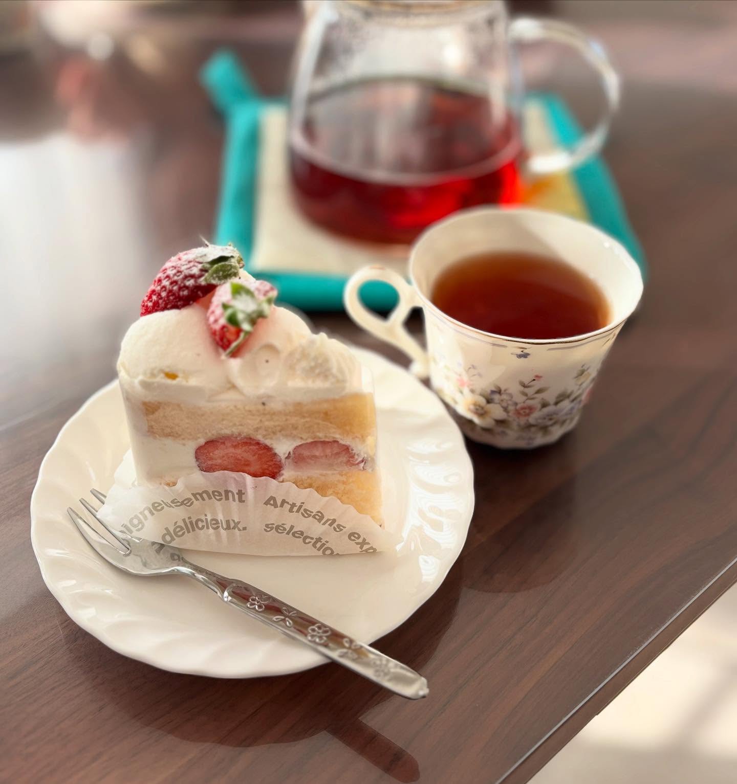 我が家で女子会☕️今川のケーキ屋さんエリオスが美味しいと聞き、ショートケーキを買って5時間も喋りました🍰お代わりしたいお味でした😋