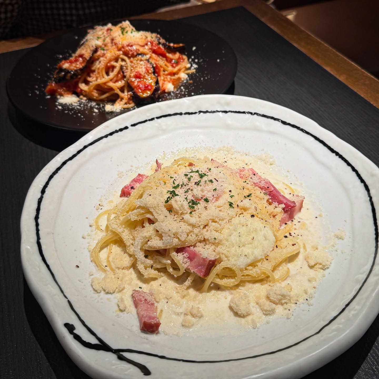 歩き回ってパスタにした。