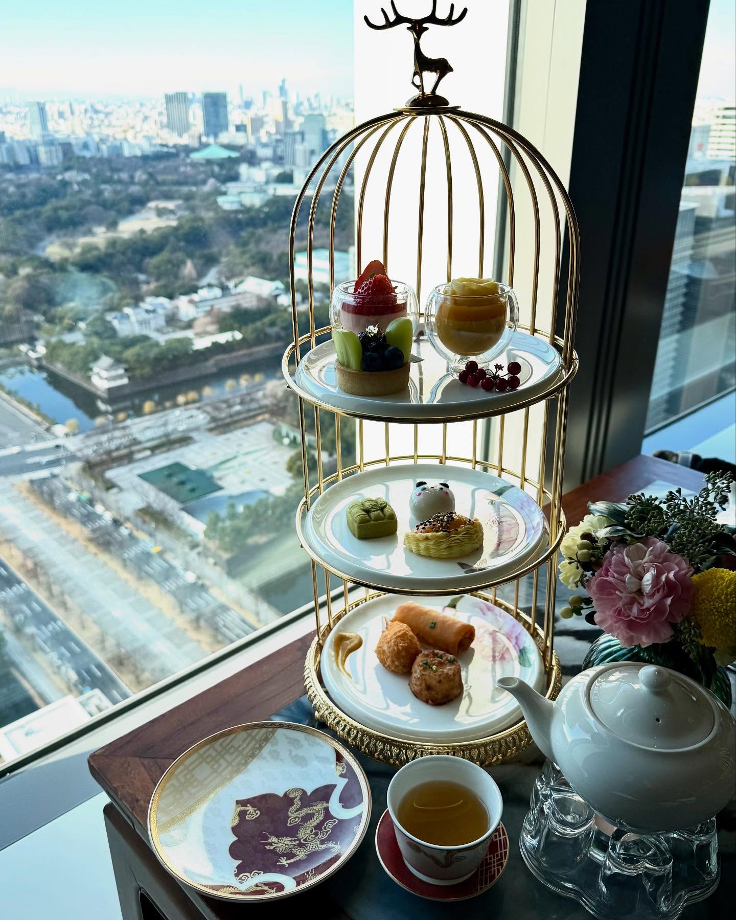 今回は、以前行って良かった丸ビル最上階の全聚徳の「楊貴妃アフタヌーンティー」に、お誘いしました。☕🫖🥟🍥🥮