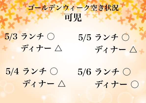 ゴールデンウィークのお席空き状況です☺️