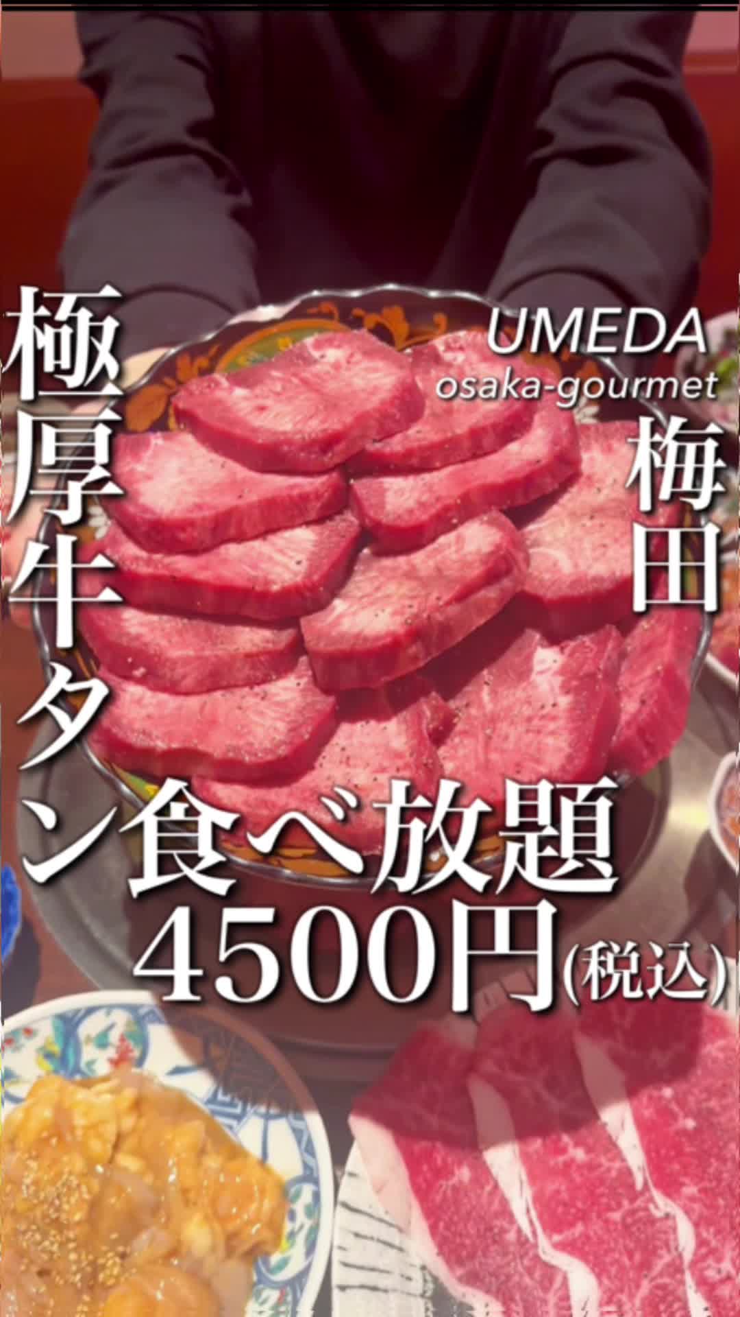極厚牛タン食べ放題 衝撃価格4500円(税込) タン好きは絶対ここすぐ行くべきだし、これタンだけでじゅうぶん元取れちゃうからめっちゃお得!しかも今ならお店をフォ...
