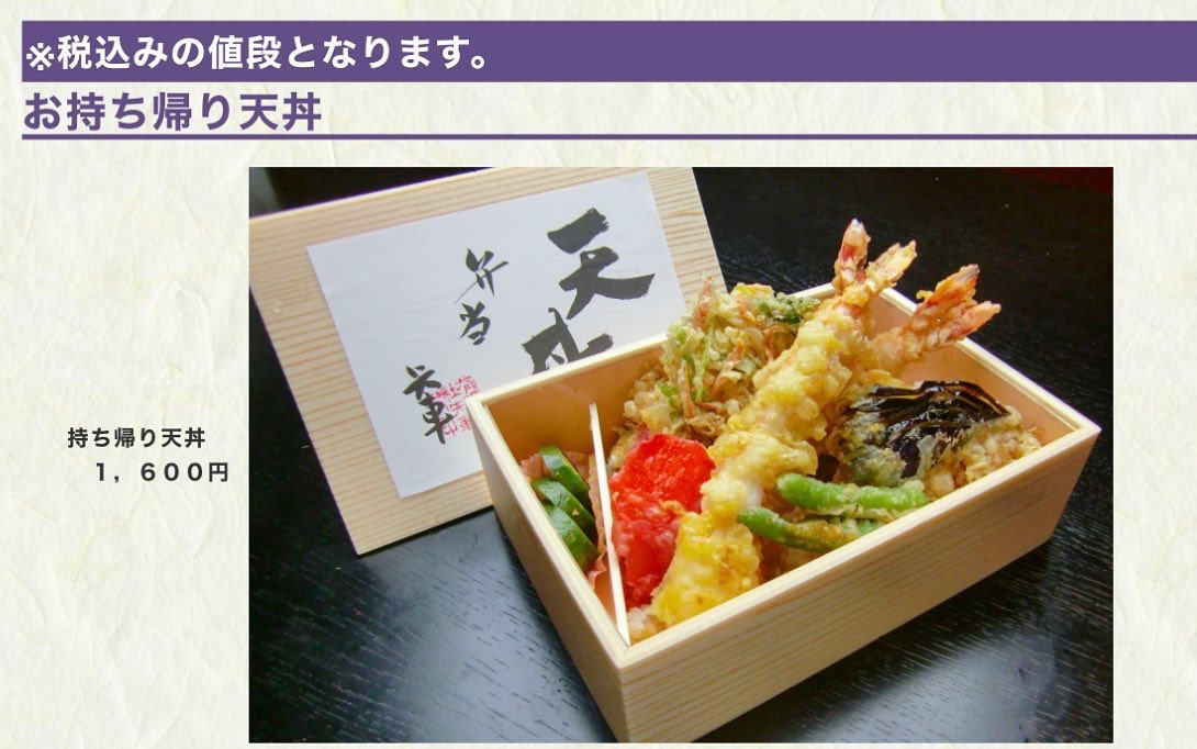 【持ち帰り天丼 1600円】