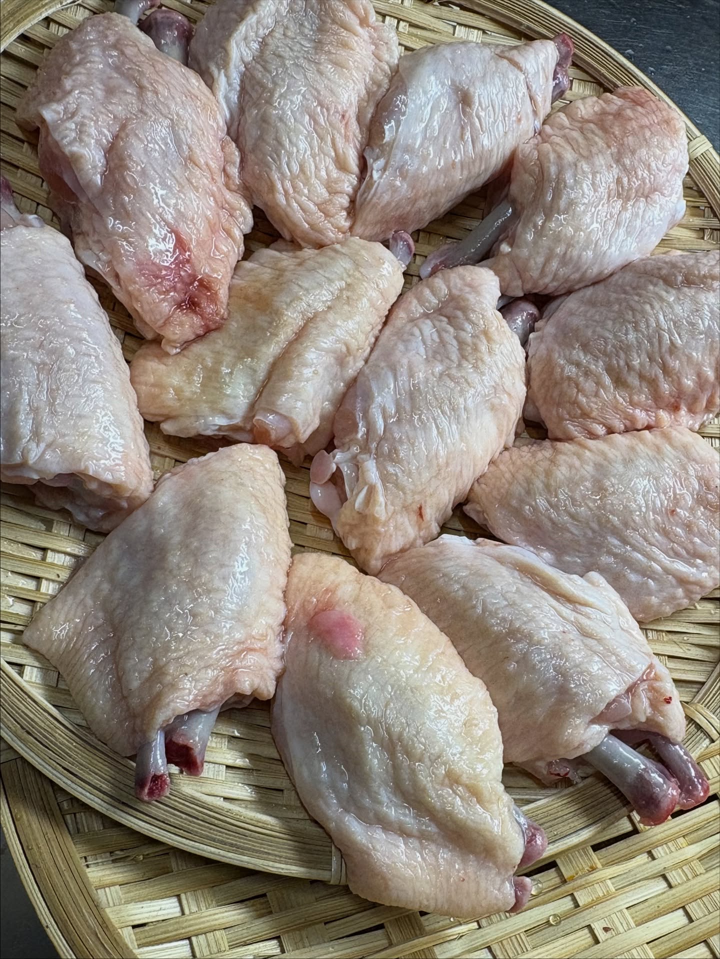 手羽先に下味つけて、扇風機を肉の表面にあてて、