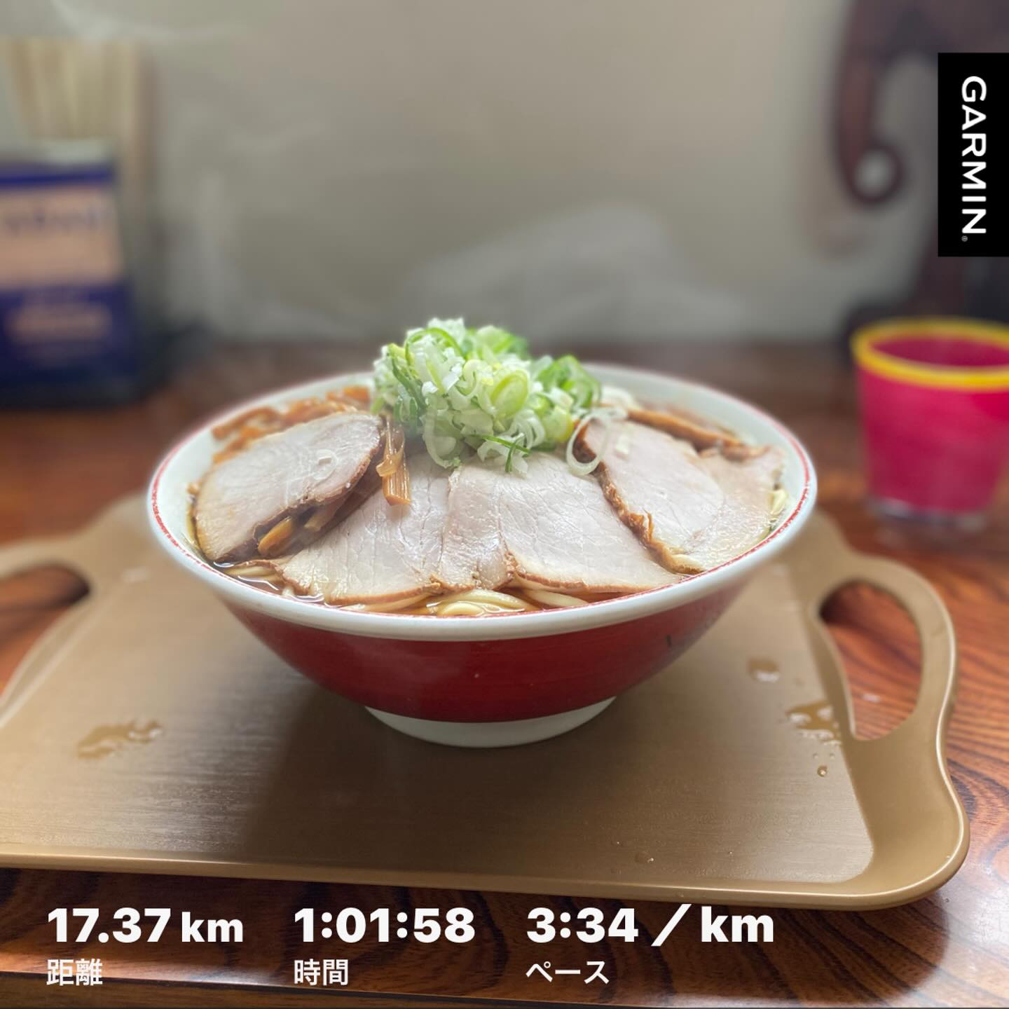 日:ペース走(17.37km 3:34)