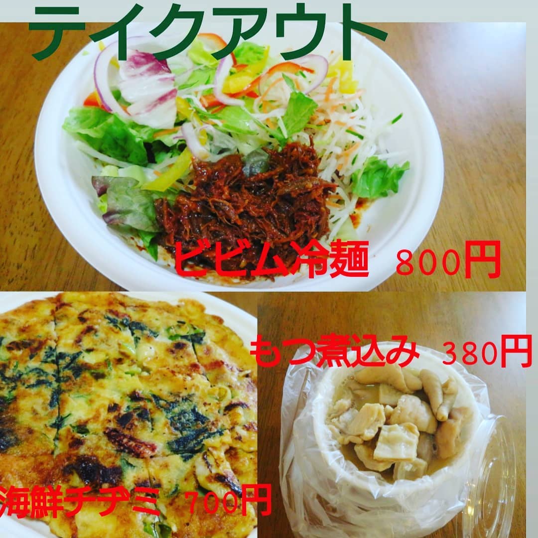 豚豚球場 ホルモン焼 テイクアウトの MENUです。 海鮮チヂミ700円 ビビム冷麺辛口 当店自家製肉味噌入り(汁なし) 800円 もつ煮込み 380円 で...