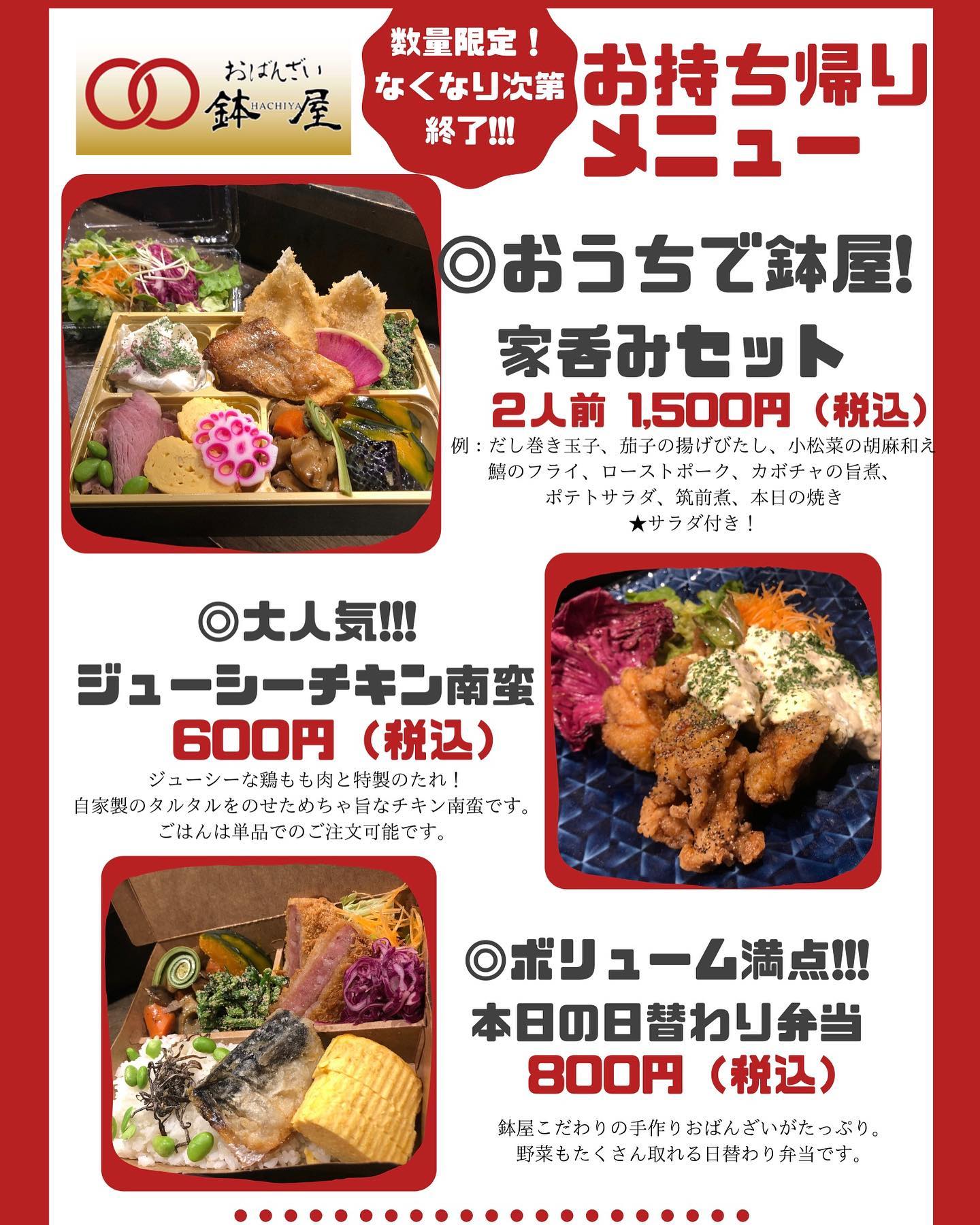 🍙鉢屋の持ち帰り始めます!!!🍙 ....