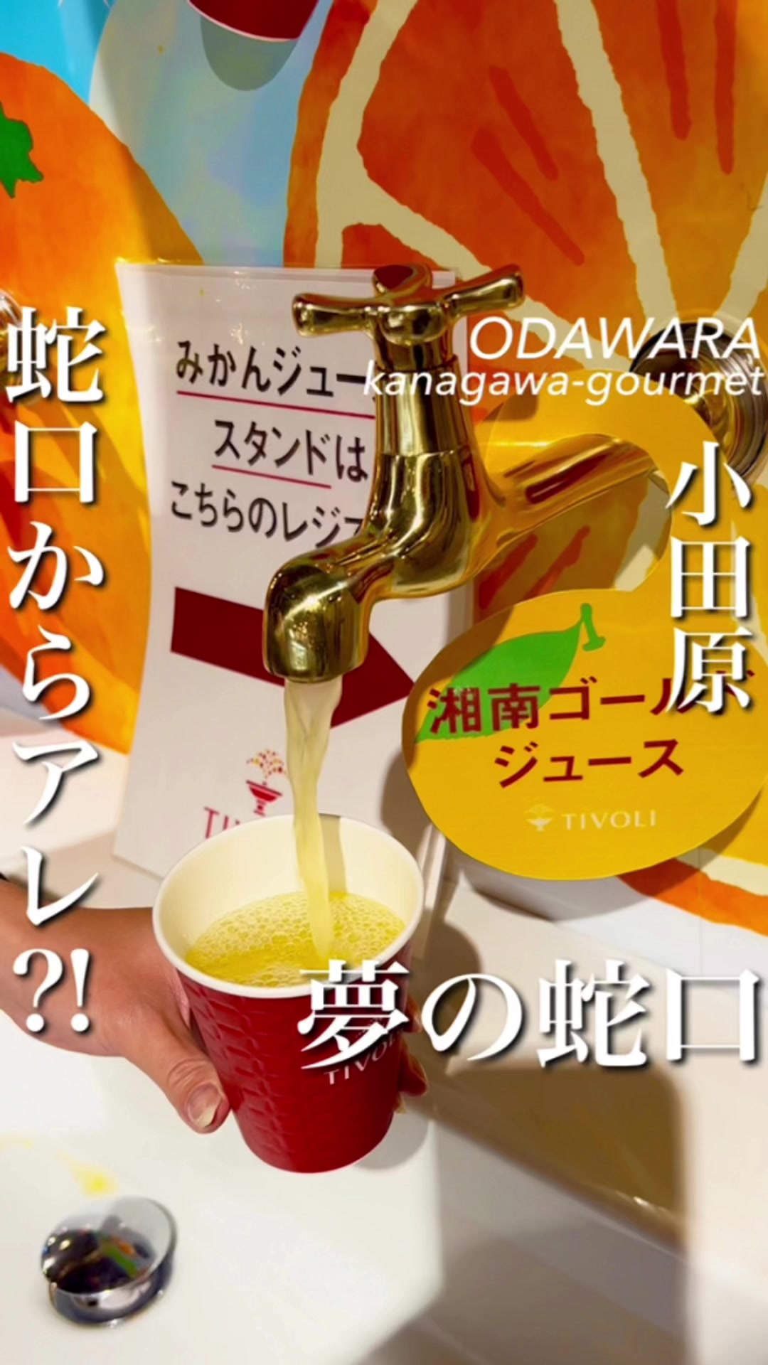 蛇口からアレが出る、夢の蛇口!期間限定で湘南ゴールドジュースが出るよ🍊湘南ゴールドって酸っぱいイメ...