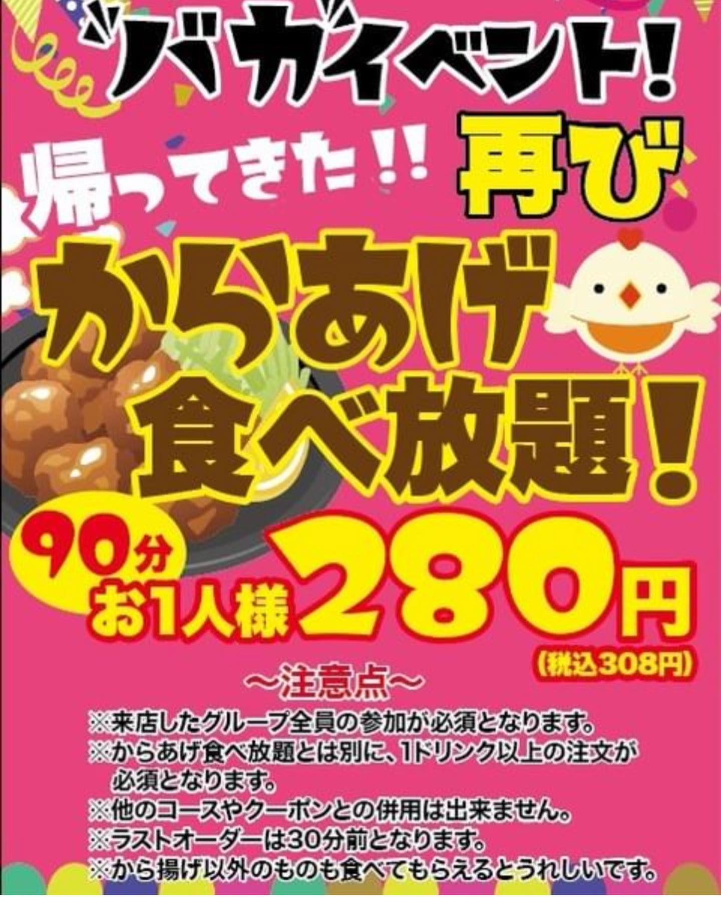 帰ってきた!!からあげ食べ放題!!...