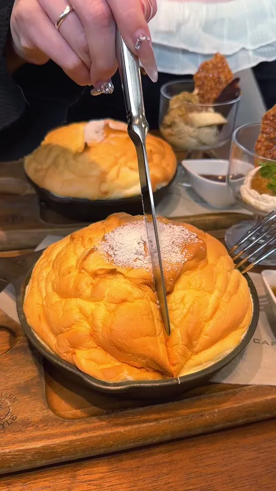 ロケ地として有名な人気カフェのスフレパンケーキ🥞...