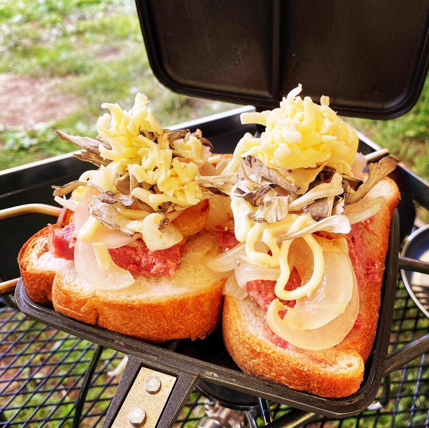 キャンプ🏕ごはん - コンビーフと舞茸のホットサンド🥪❣️La comida de Camping❤︎