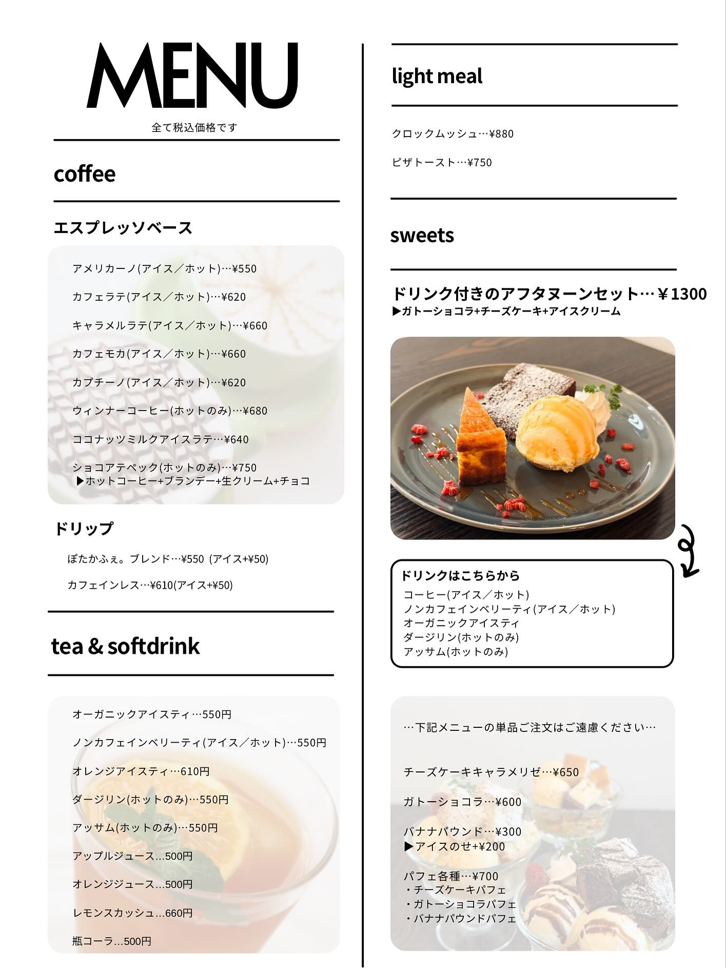 平日は軽食+スイーツ+ドリンク