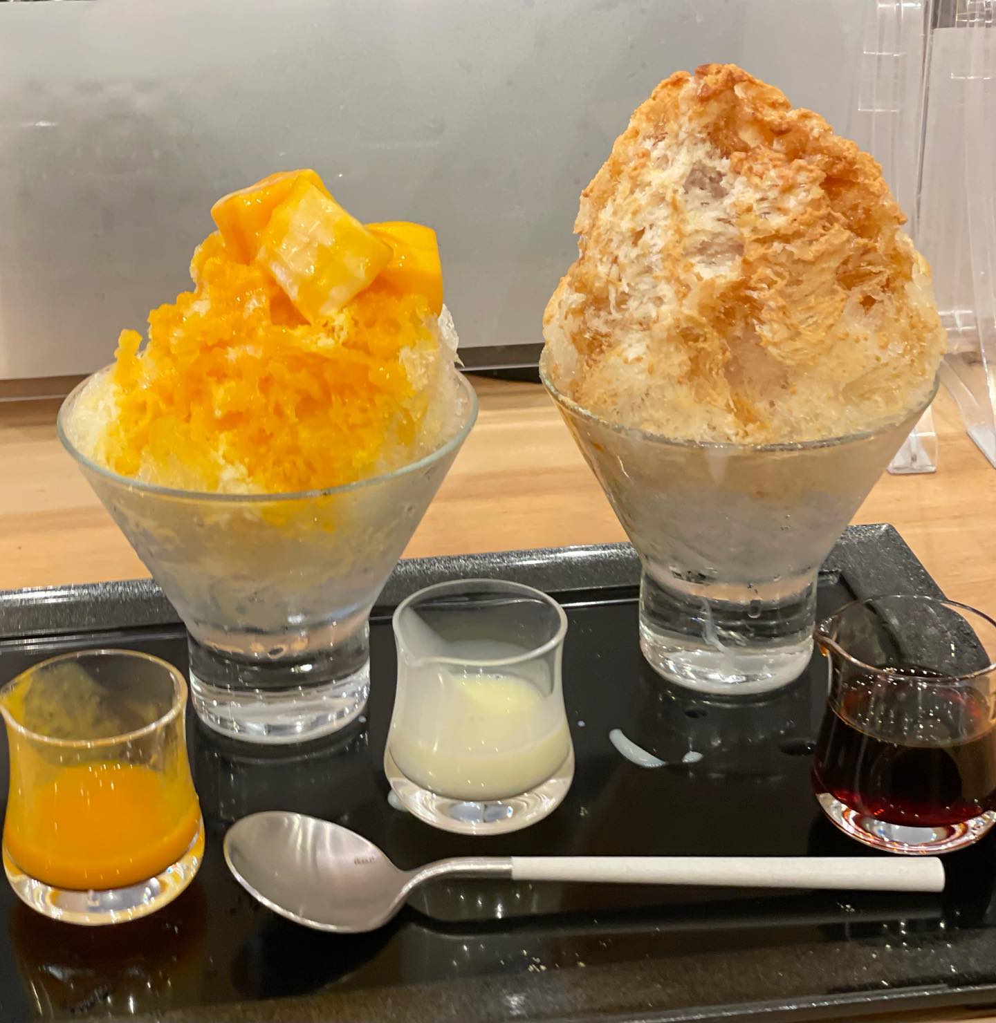 ・2種のかき氷(マンゴー、黒蜜きな粉)