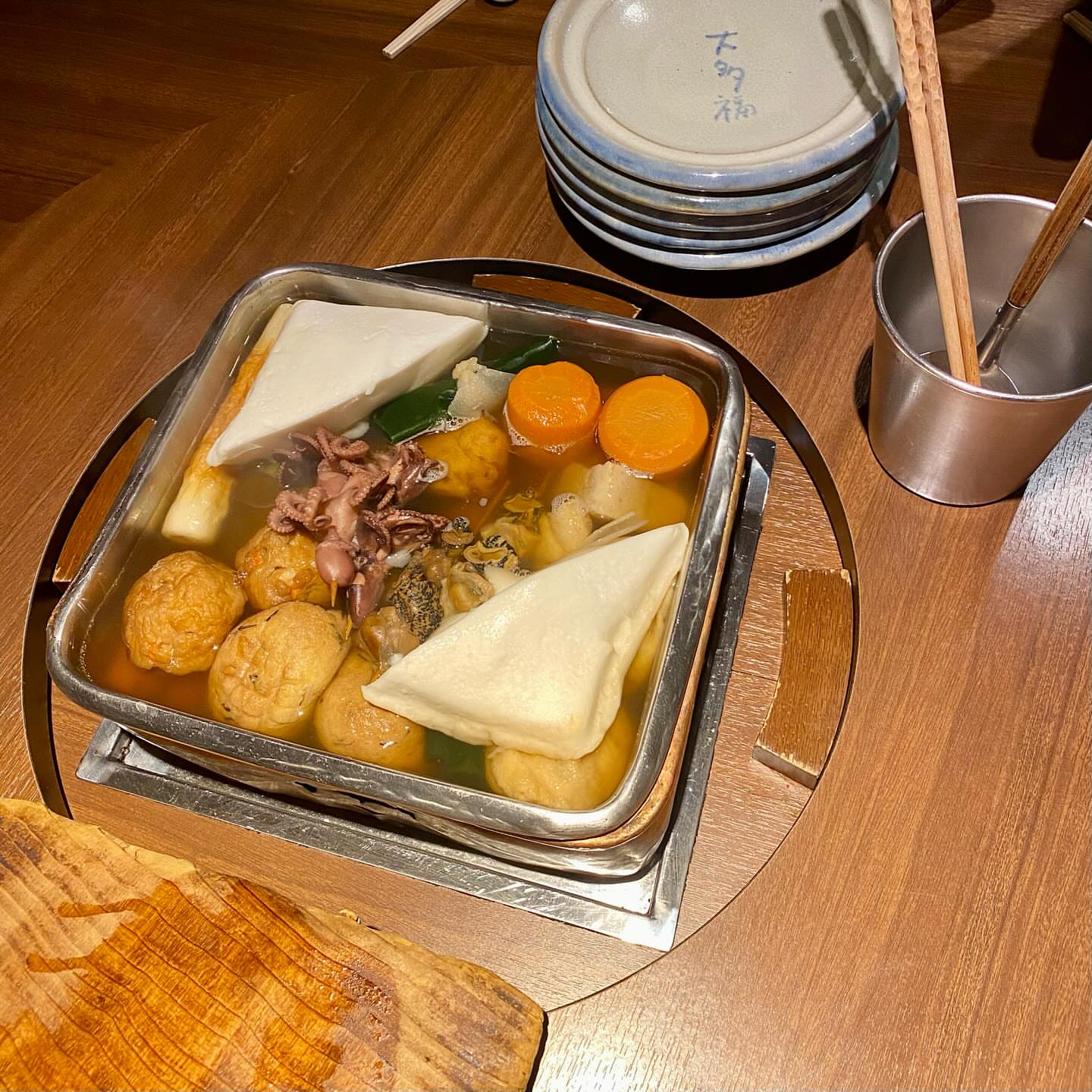 円卓を囲んで突くおでん鍋は乙なものでした✌️
