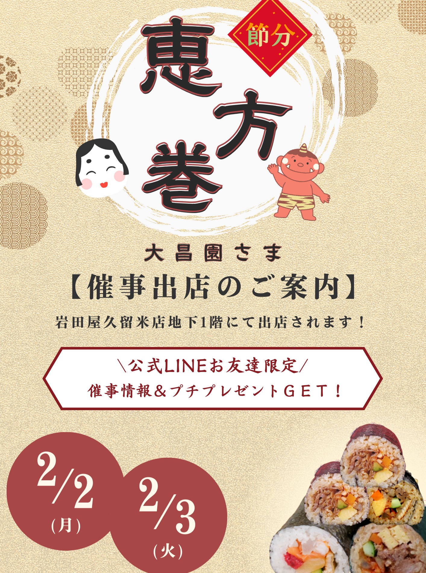\迷わず地下へGO!2日間限定『福を呼ぶ恵方巻』が登場👹/