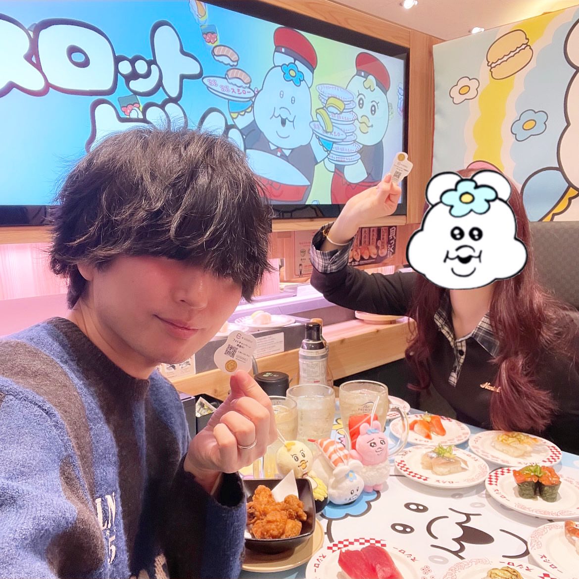 今日からコラボ後半ちゃむ!スシロー×可哀想に!来てるちゃむ🧚♂️⚪️🍠🦐🌽...