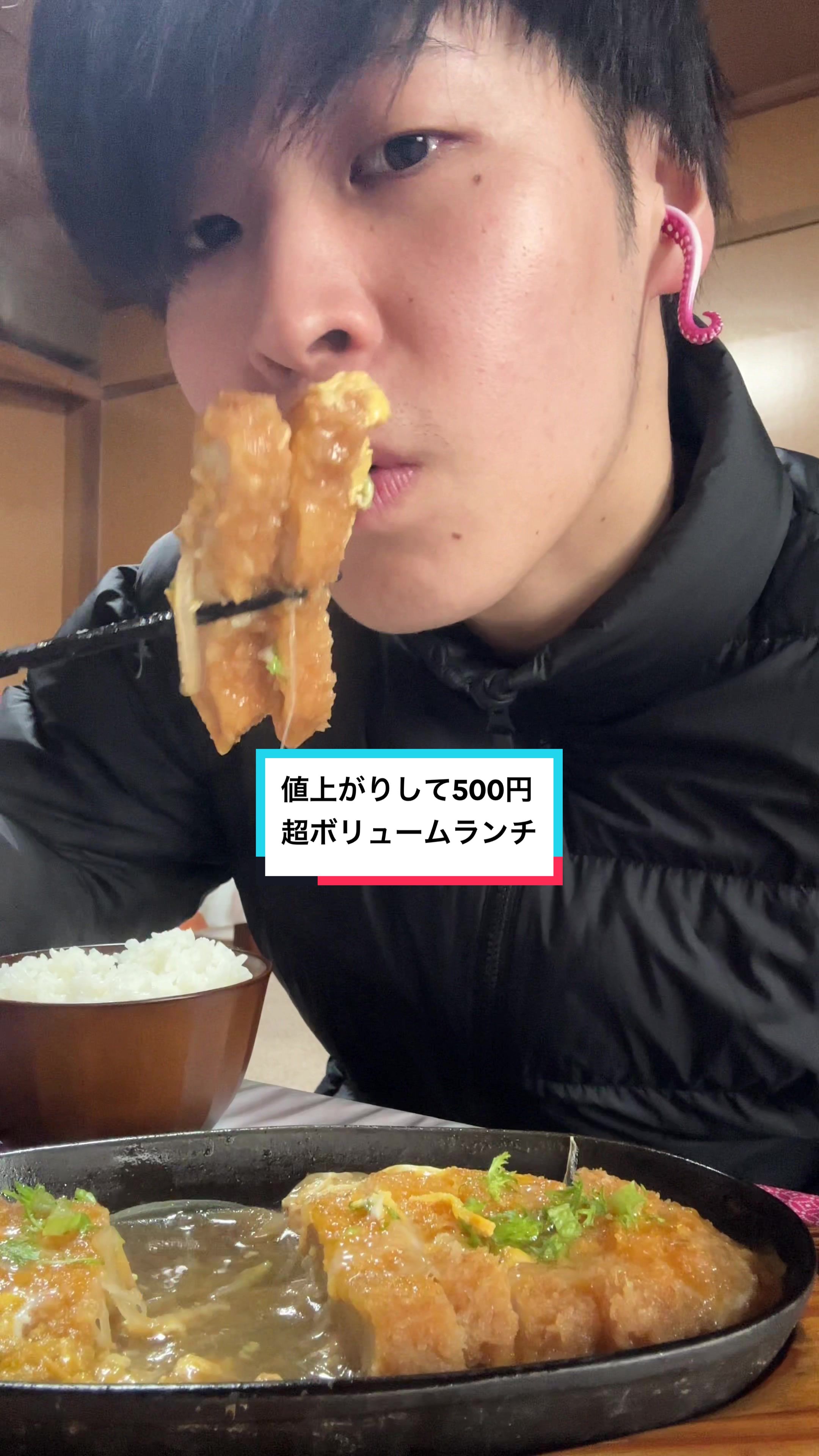 途中映るかつとじ"デカすぎ"て鉄板提供…...