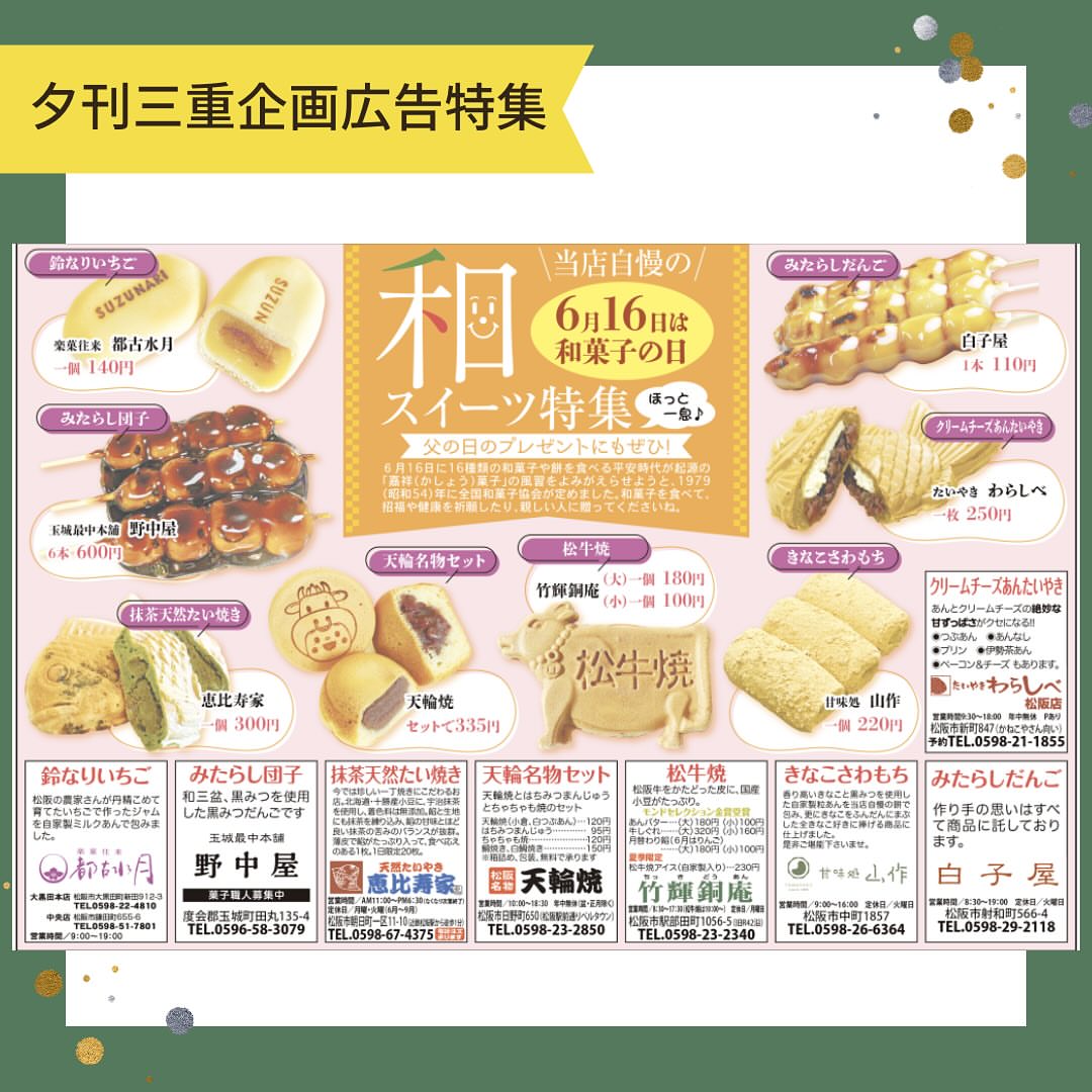 夕刊三重掲載の和菓子です