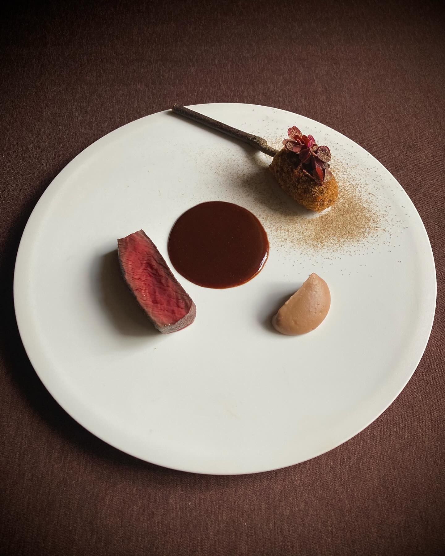 鹿のファルスで包んだ高農園さんのサラダ牛蒡を牛蒡のパウダー入りのパ...