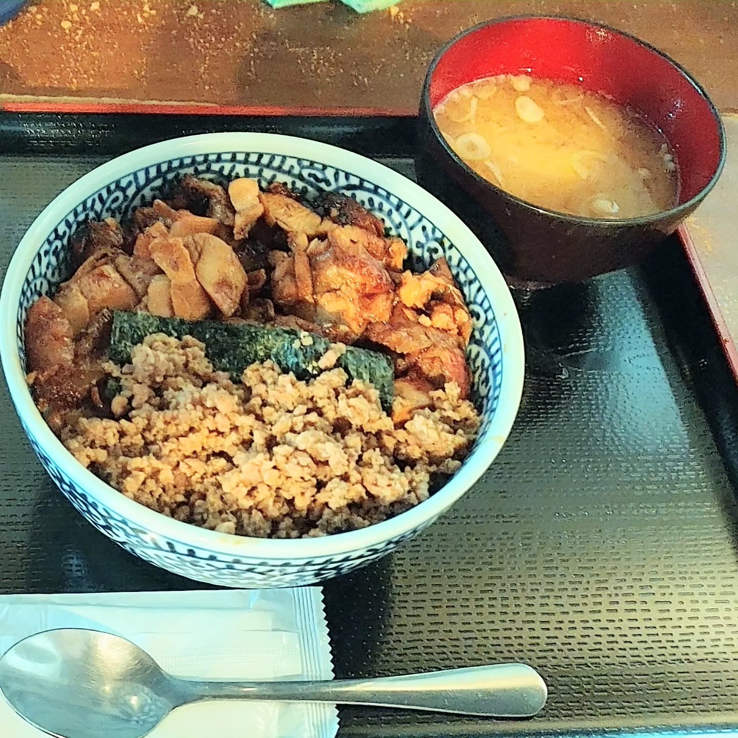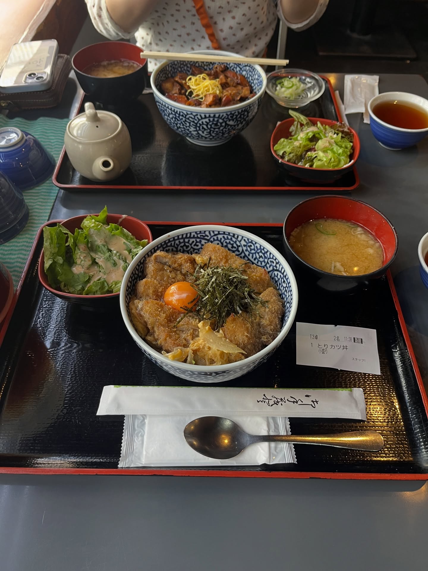 名物は焼鳥と鳥そぼろがあいがけになった「きじ丼」なんだけど、カツ丼に目がなくて、、、🥹