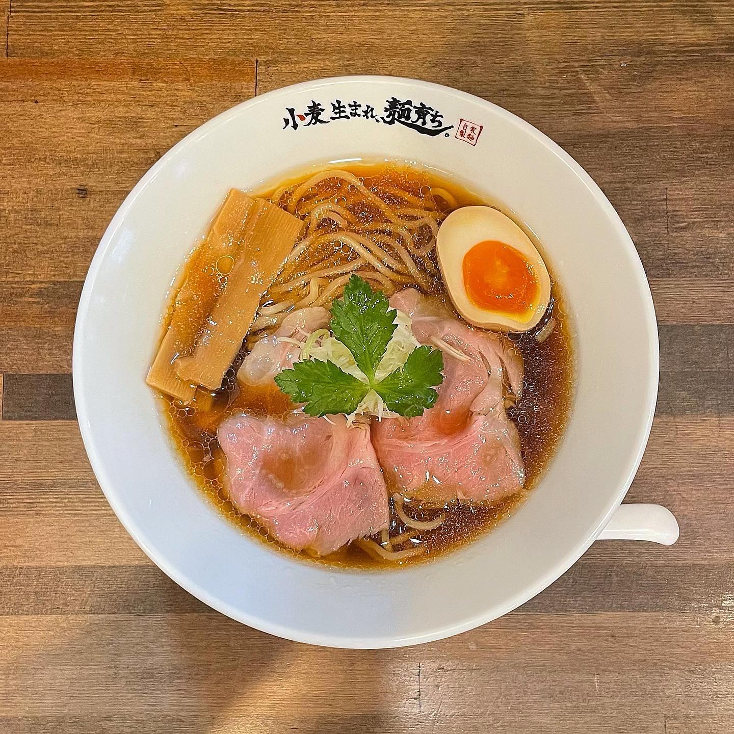 南森町の小麦生まれ、麺育ち。は自家製麺と濃厚鶏白湯が自慢のラーメン店。醤油ダレと鶏油の風味が利き、鶏と魚介の旨味が重なる深い味わい。看板は中華そばと鶏白湯そば。トッピングはレアチャーシューや味玉、ほうれん草、海苔。コラボメニューや白ごはんの無料案内も魅力。