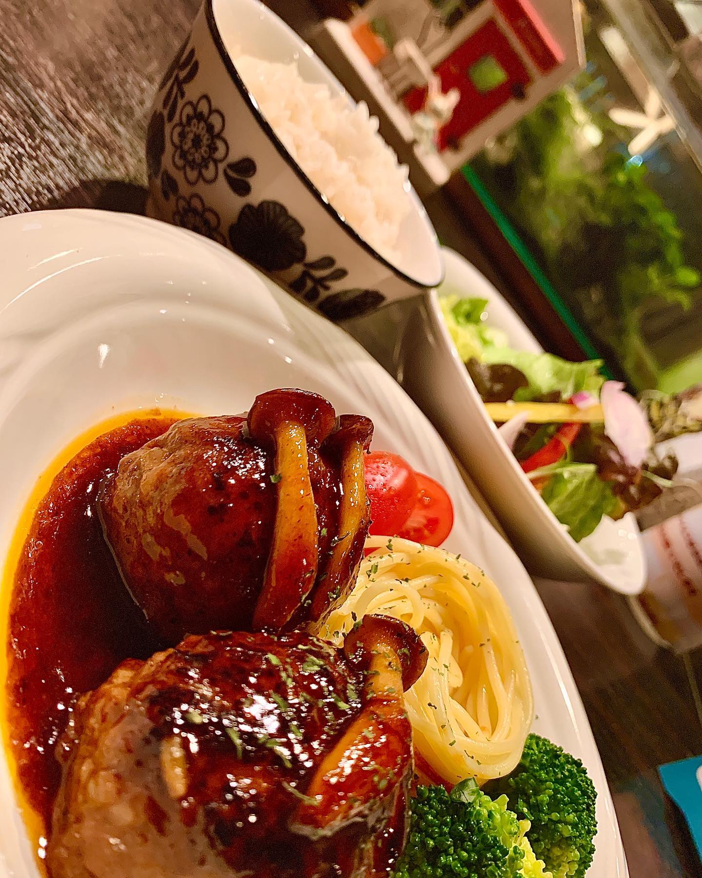 「黒毛和牛を使った、煮込みハンバーグ」