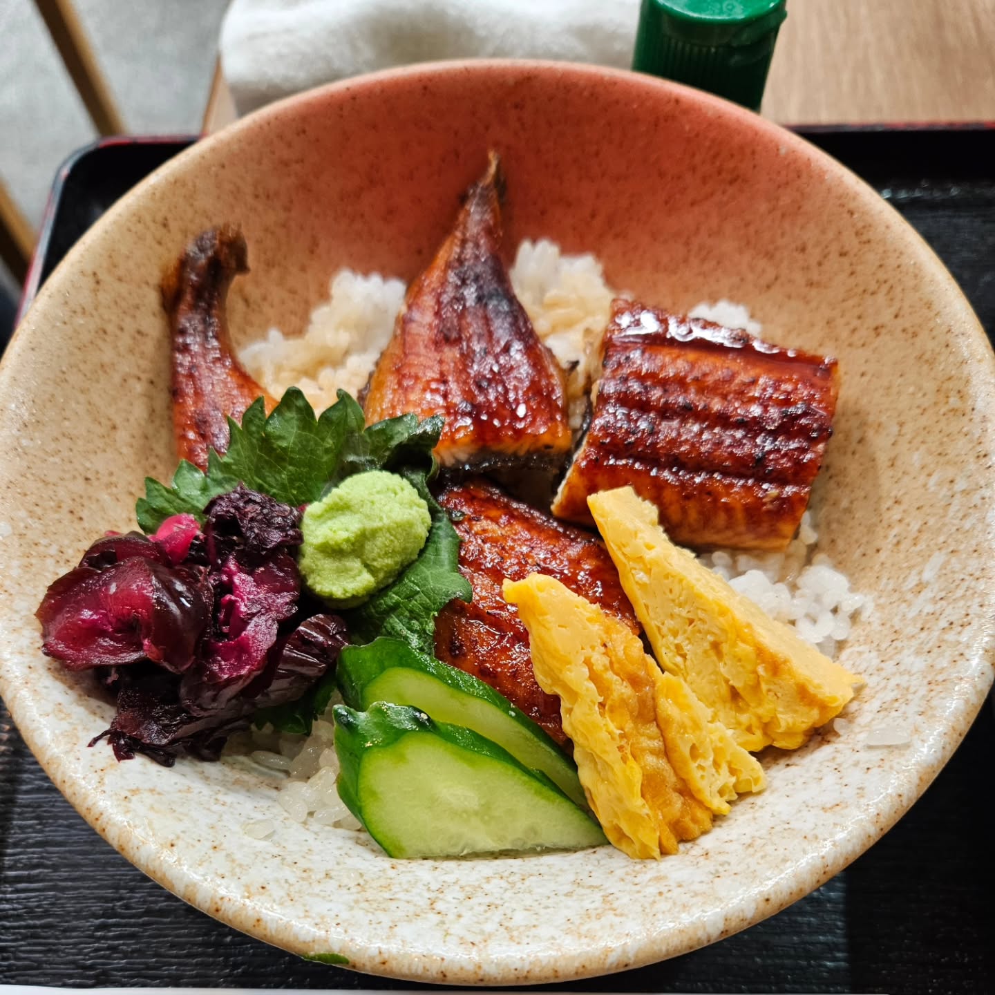 うなぎ丼にホタルイカの沖漬け追加😆