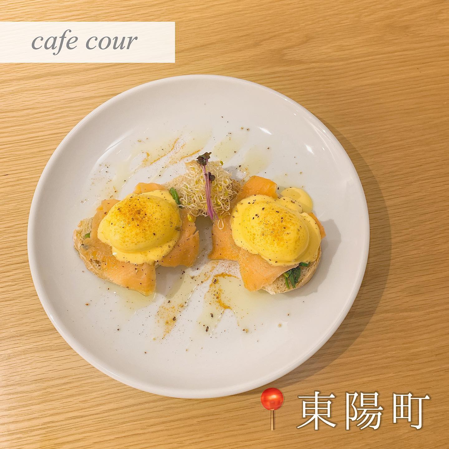 東陽町の隠れ家的カフェ cafe COURは、自家製カンパーニュを外カリ中もっちり焼き上げ、エッグベネディクト(サーモン)と相性抜群です。コーヒーはiki espressoの豆、デザートにはレモンムースケーキやエスプレッソトニック。緑あふれるサンルームが魅力です。