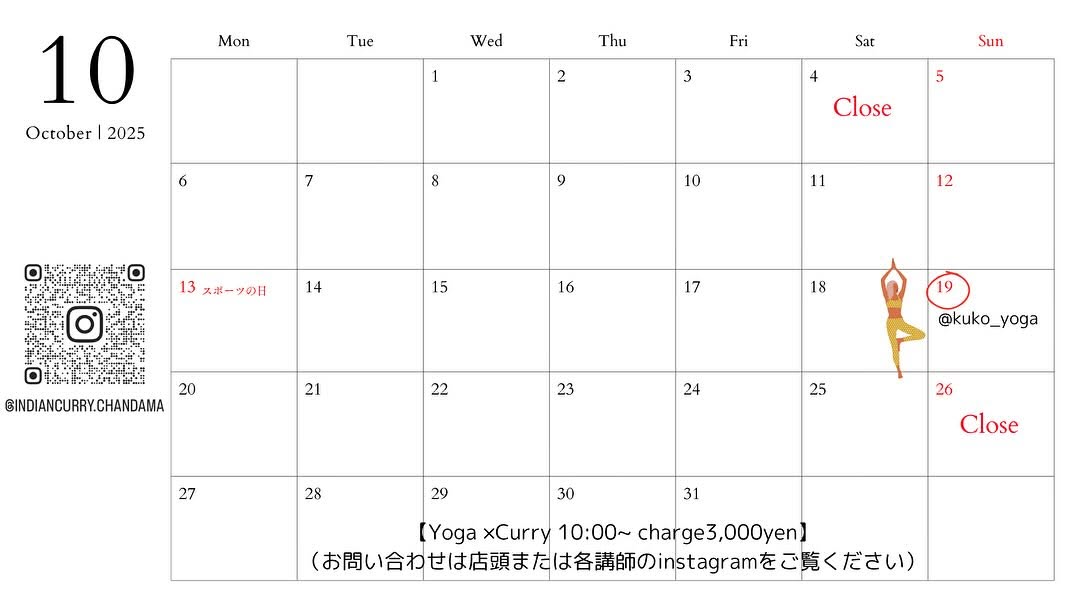 ヨガ×カレーは19日(日)のみとなってしまいます...