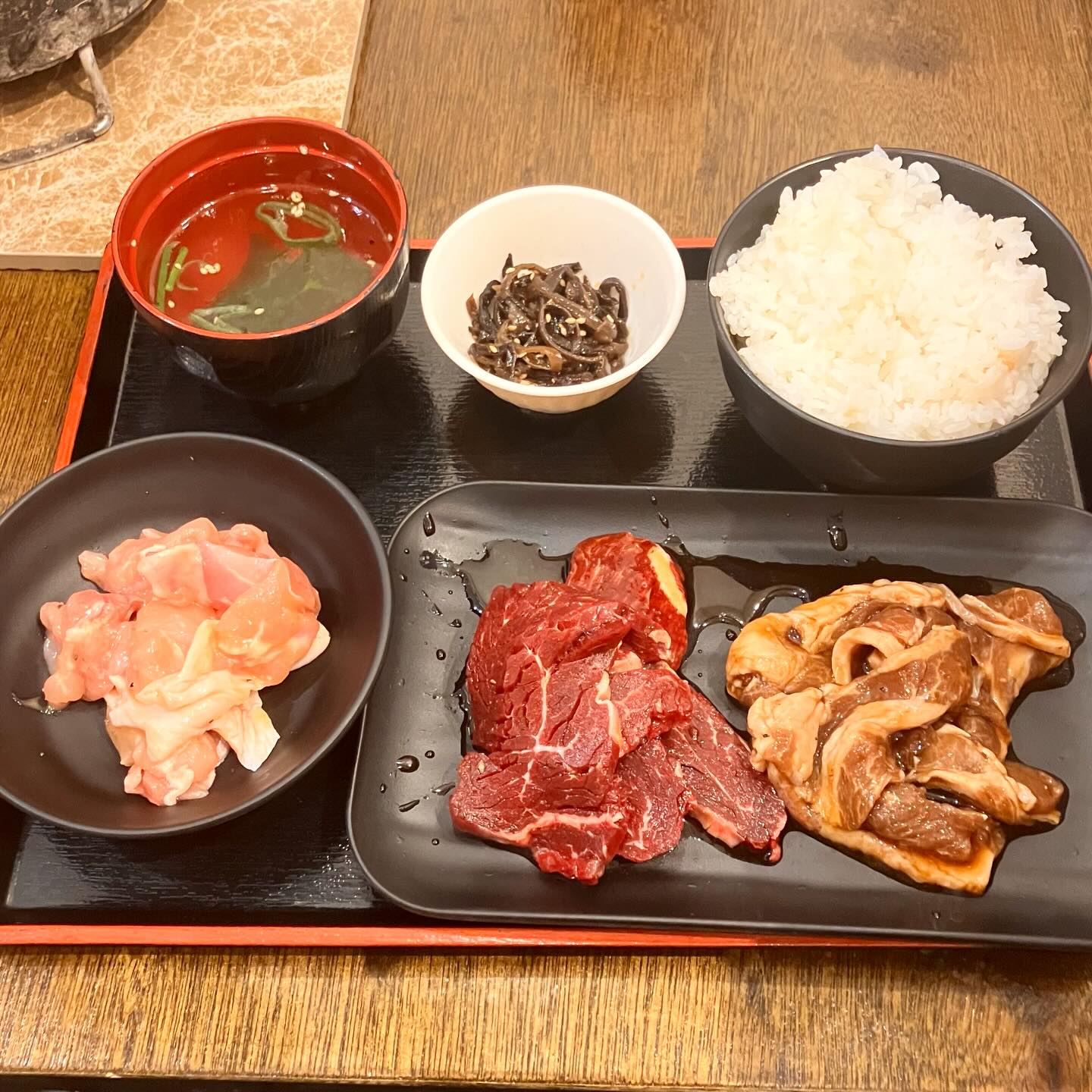 ・満足B定食(ジンギスカルビ ハラミ 鶏もも) ¥1298
