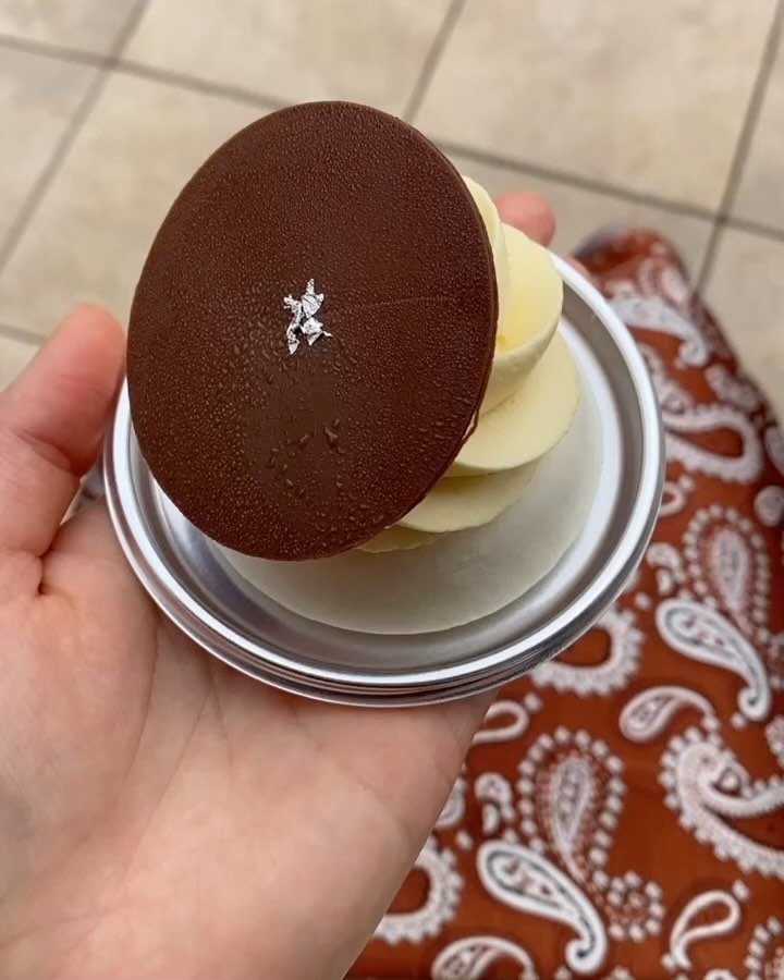 ミルク、ビター、ホワイトのムースを重ねて、ボトムはサブレグ...